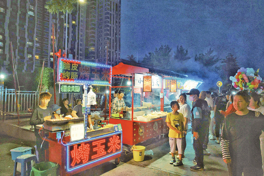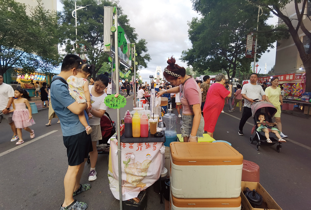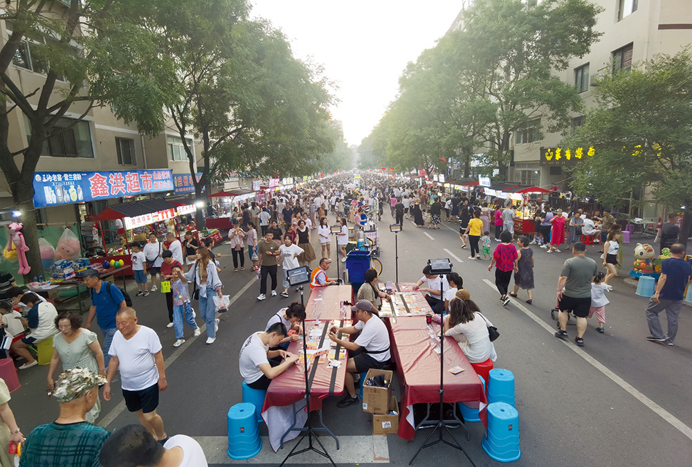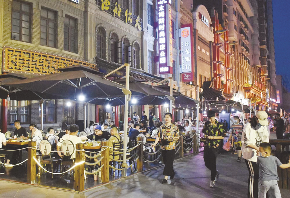 어둠이 내리자 화려한 등불이 켜지고 선선하고 상쾌한 산들바람이 가볍게 스쳐 지나간다. 안동로가(安东老街)문앞과 월량도(月亮岛) 야시장의 푸드코트 앞은 련일 인파로 호황을 누리고 있다. 야시장에서 찬란한 불빛과 함께 먹거리, 쇼핑, 레저……등을 한번에 즐길수 있다.