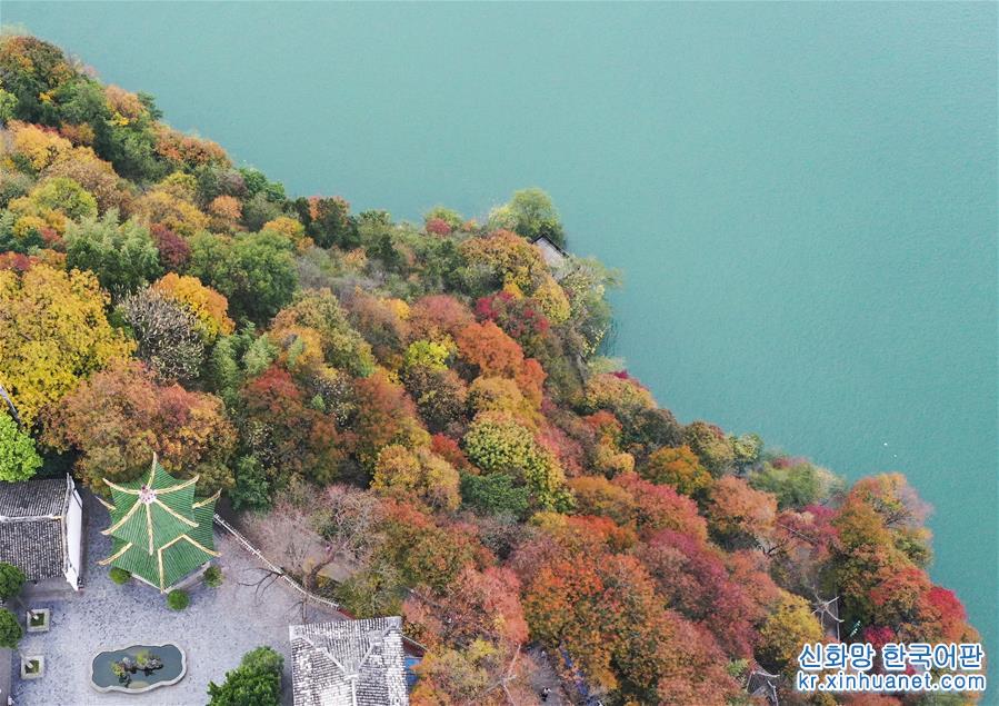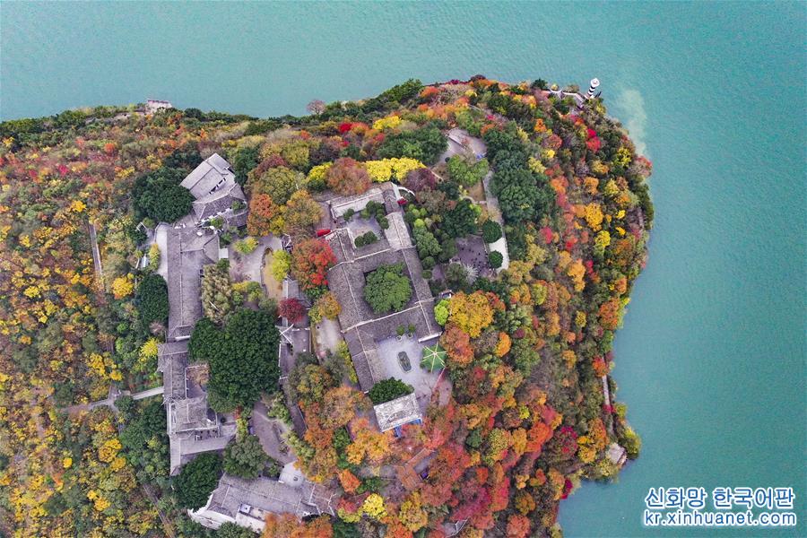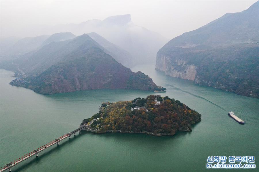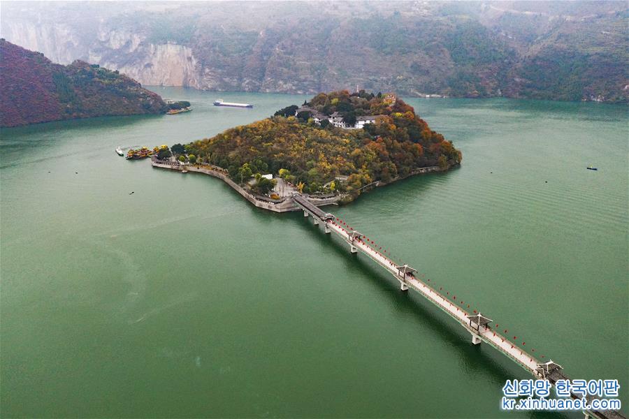 12월21일 드론으로 촬영한 바이디청(白帝城) 및 주변 경치. 충칭시 펑제(奉節)현의 바이디산 위에 있는 바이디청(白帝城)은 창장 싼샤 중 하나로 꼽히는 취탕샤(瞿塘峽)의 출발점이다. 한겨울 바이디청 일대는 수려한 경치로 장관을 이루고 있다. [촬영/신화사 기자 왕취안차오(王全超)]