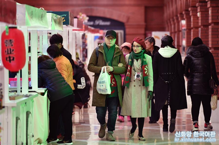 12월 25일, 유람객이 민위안(民園)광장 밖에서 산책하고 있다.