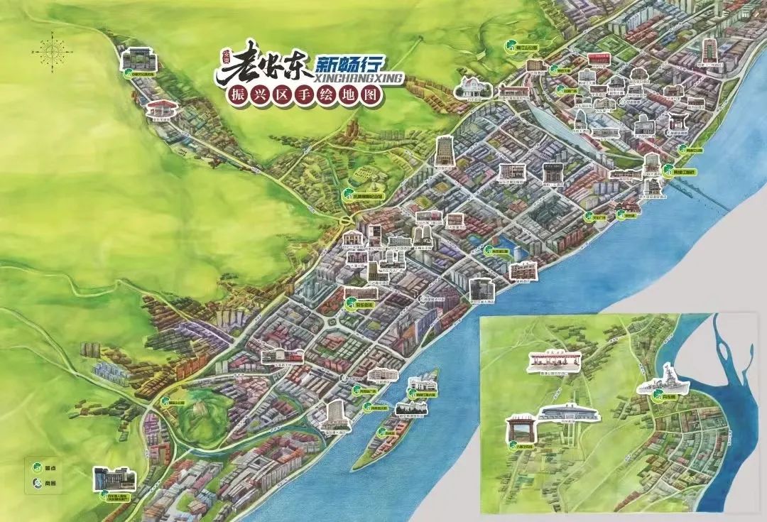 ‘쌍절’ 기간 단동시진흥구상무국은 시민과 관광객에게 편의를 제공하기 위해 '로안동 신출행' 진흥구 핸드페인팅 지도를 제작했다. 지도는 진흥구의 문화관광 및 상업무역 자원을 전시했다.