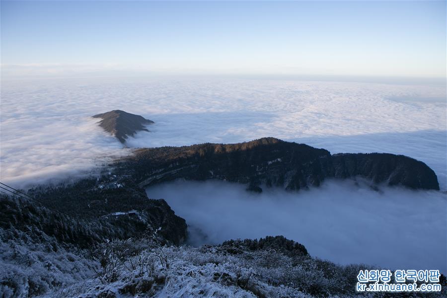 12월 28일, 쓰촨(四川)성 어메이산(峨眉山) 진딩(金頂)에서 촬영한 풍경. 은빛으로 단장된 한겨울의 어메이산이 선경처럼 아름다웠다. [촬영/ 신화사 기자 리멍신(李夢馨)]