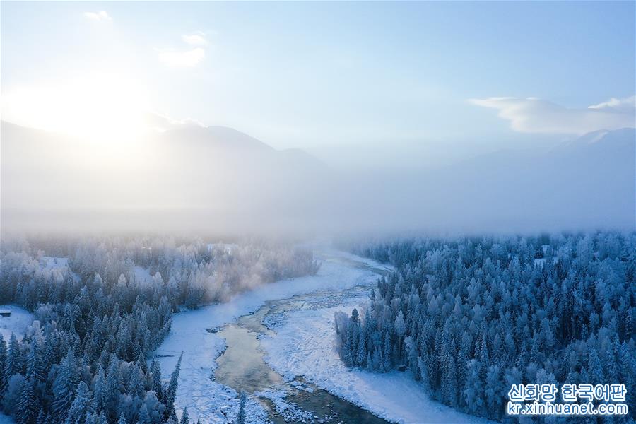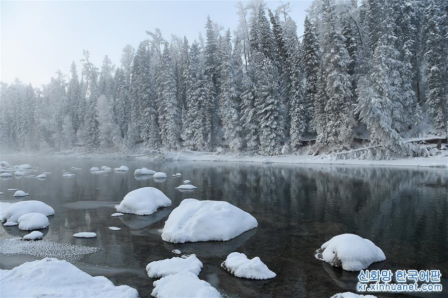 은빛 세상이 펼쳐진 겨울의 신장(新疆) 카나쓰 관광지는 설원, 얼음 호수, 상고대가 어우러져 때로는 한 폭의 수묵화가 펼쳐 지기도 하고, 때로는 동화 속 세계를 방불케 하기도 한다. [촬영/신화사 기자 쑹옌화(宋彥樺)]