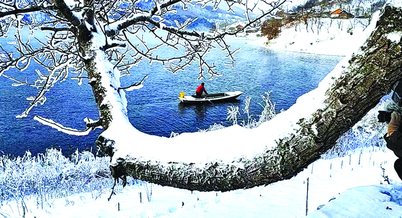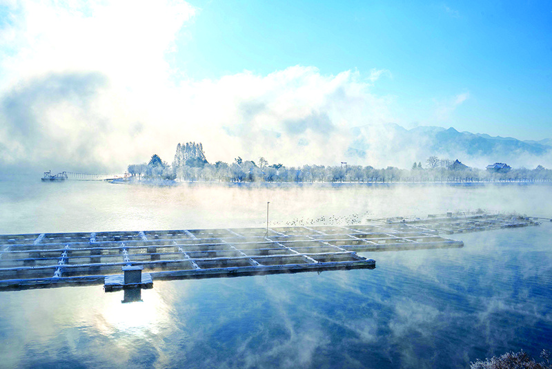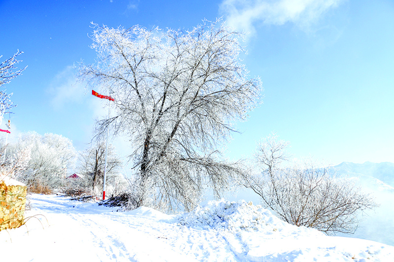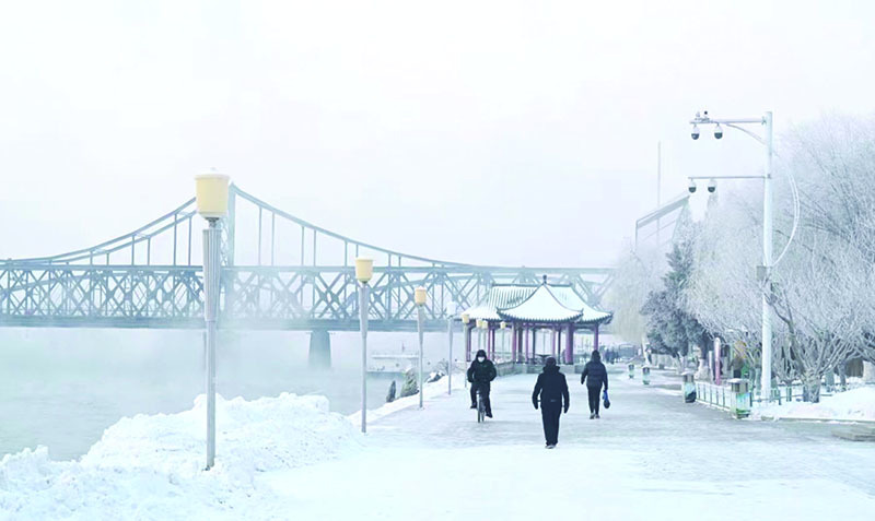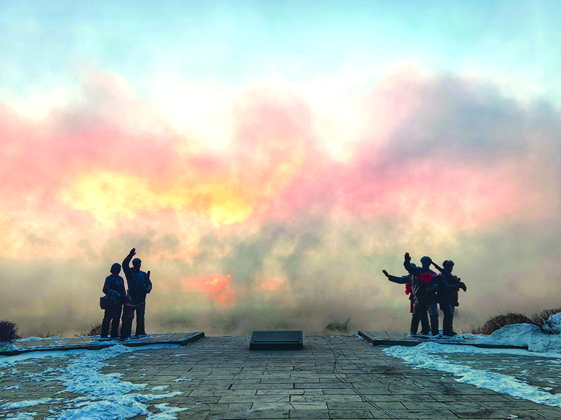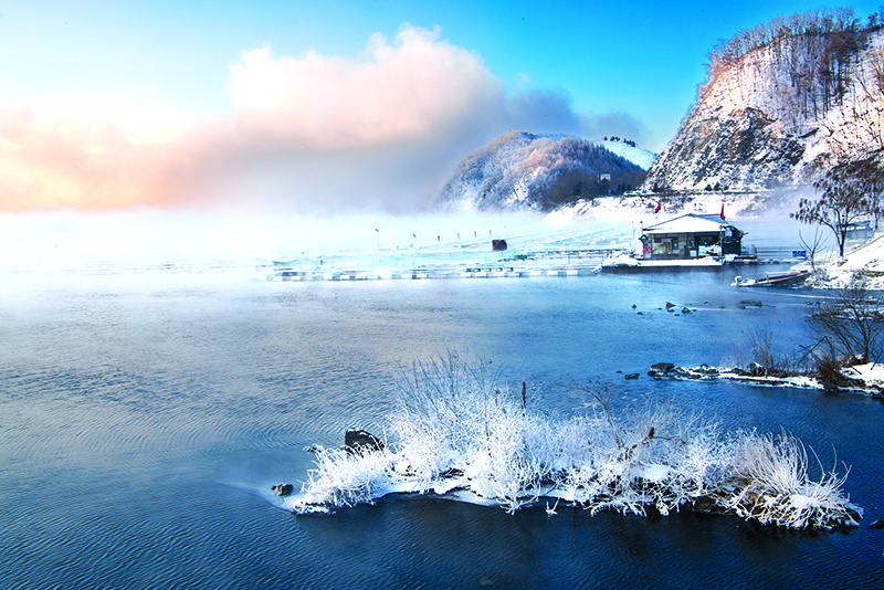 겨울 눈놀이 외에 압록강변에서 무송을 감상하는 것도 좋은 선택이다. 12월 하순부터 압록강변에 아름다운 무송 경관이 여러 차례 나타났다. 이른 아침 안개가 피여오르는 압록강과 새하얀 무송은 마치 ‘선경’을 방불케 한다. 나무는 하얗고 영롱한 무송으로 단장되여 심히 아름답다.