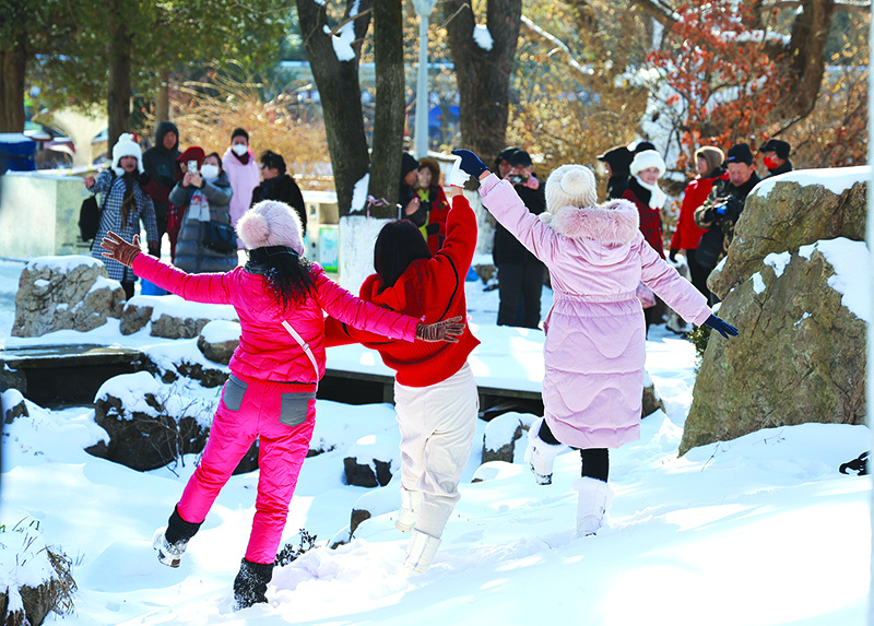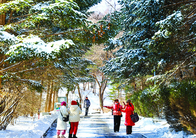 금강산공원이 눈으로 뒤덮인 요즘 많은 시민들이 알록달록한 복장을 하고 사진을 찍으며 추억을 남긴다.