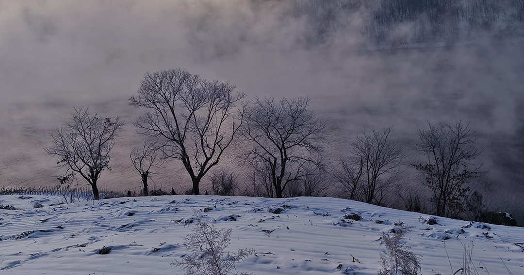 1월 2일, 사진 애호가들이 단동시관전만족자치현 수풍호반을 찾아 사진을 찍었다. 눈 내린 후의 수풍호는 마치 한 폭의 산수화처럼 아름답다.