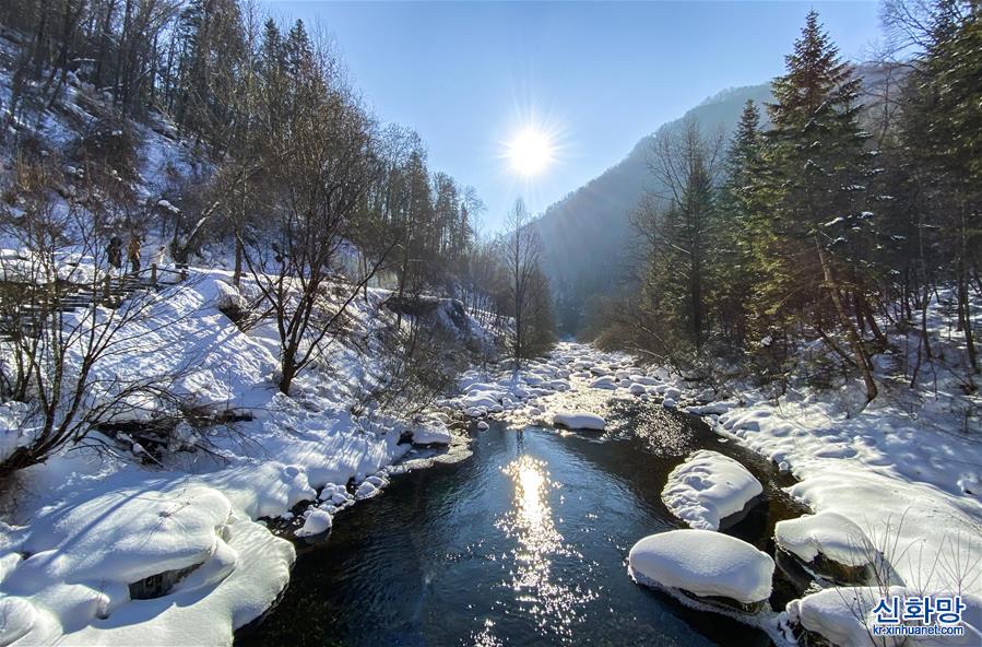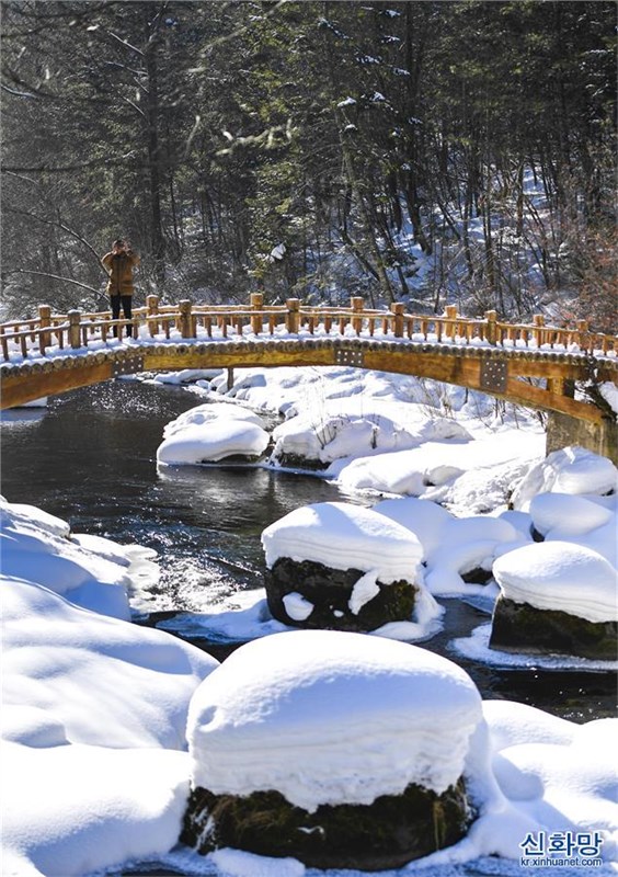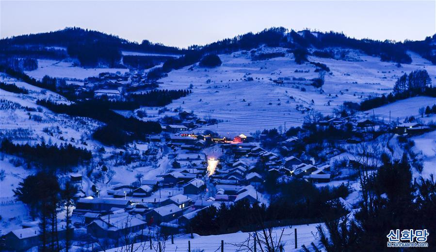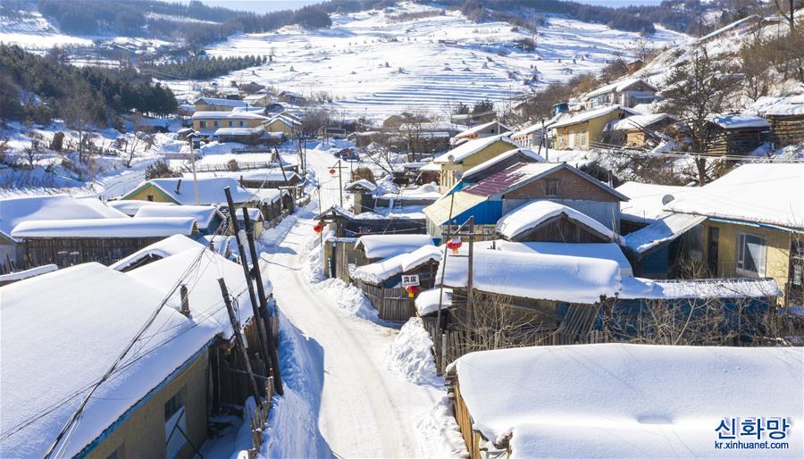 지린성 린장시 화산진(吉林省临江市花山镇)에서 촬영한 쑹링 눈마을 풍경(1월14일 촬영) 겨울, 창바이산 중심부에 위치한 지린성 바이산시 주변 지역의 겨울 풍경은 한 폭의 그림을 보는 듯 하다. [촬영/신화사 기자 쉬창(許暢)]