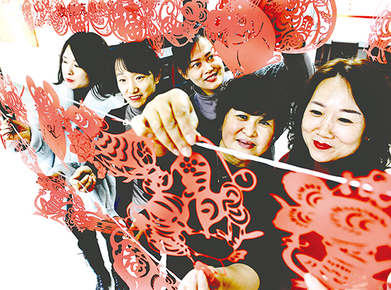 1월 16일, 진흥구 림강가두 동승지역사회에서는 종이를 오려내는 활동을 진행하였다. (기자 송영곤 찍음).