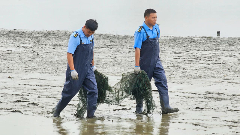 단속 인원들은 해안 얕은 곳과 강변을 따라 순찰하며 지렁이 통발, 갈고리 등 불법 어구를 청소하고 그물에 걸린 어획물은 현장에서 방생했다.
