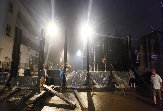폭우가 오기 전 시, 구 건설 계통은 614명의 구조 인력을 투입하고 모래주머니 87,000개, 모래 1,000㎥, 비상 배수 설비 50대, 디젤 발전기 6대, 배수관 300m, 덤프트럭, 굴착기, 굴토기, 크레인, 삽차 등 대형 기계 장비 208대를 준비했다.
