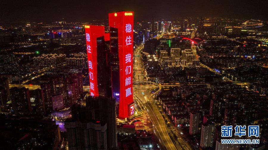 2월 2일, 남경시의 한 고층건물의 외립면에 "우리는 이길 수 있다"라는 표어가 나붙었다. (신화사 기자 리박 찍음).