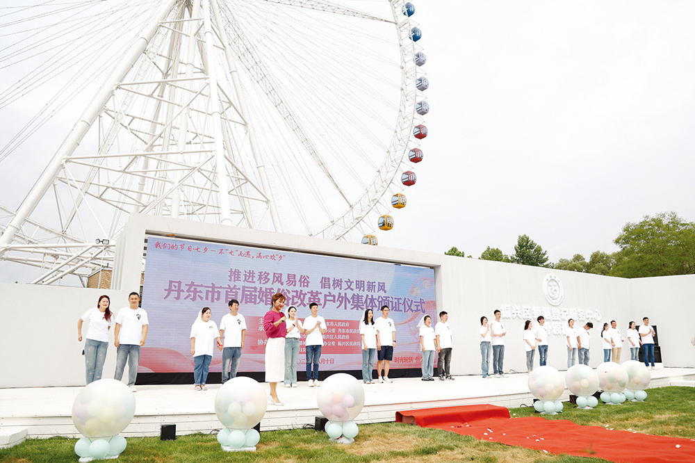 단동시는 결혼풍속 개혁을 위해 야외 관광지에 혼인신고소를 설치하고 혼인신고 서비스를 특색 있는 결혼 문화와 세련된 공원 경관과 결합했다. 칠석날, 대관람차는 10쌍의 금혼, 은혼 부부를 특별 손님으로 맞이하여 그들의 아름다운 사랑 이야기를 공유하는 자리를 마련했다.