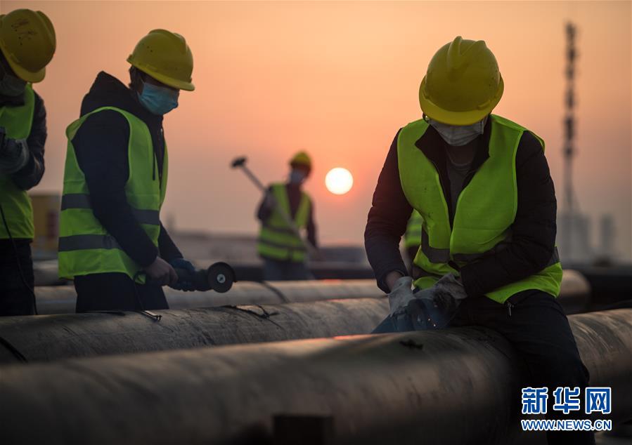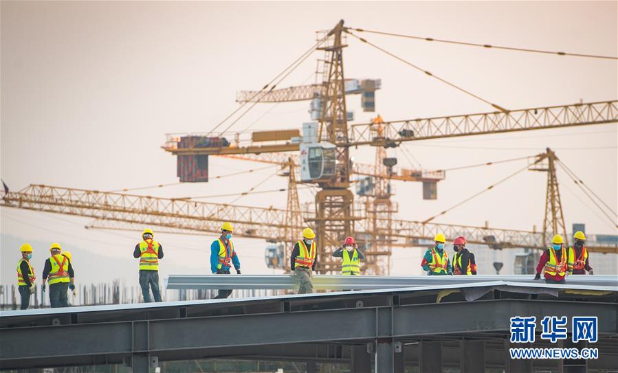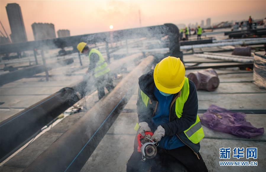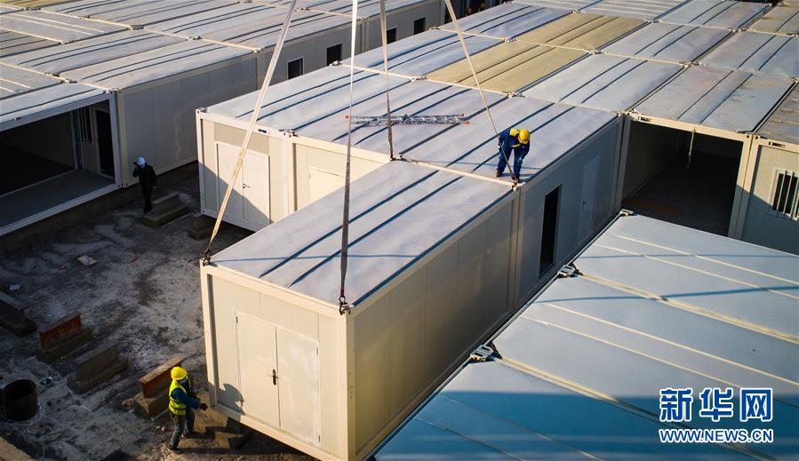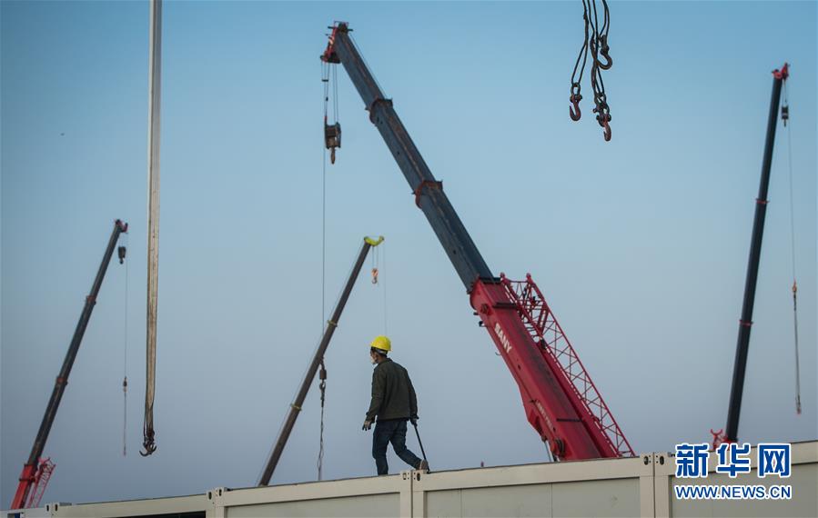 2월 4일, 무한 뢰신산병원 건설현장에서 중건 3 국의 건설로동자들이 시공을 다그치고있다. (신화사 기자 소예구 찍음).