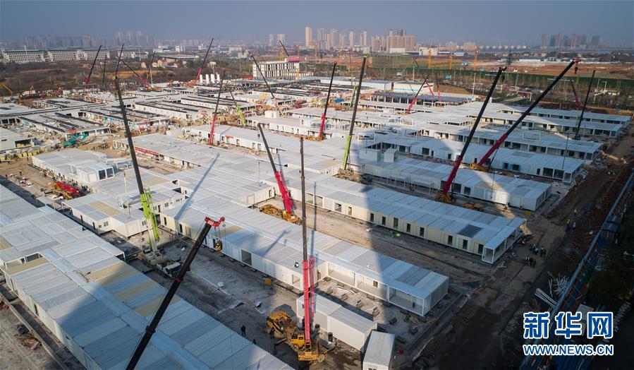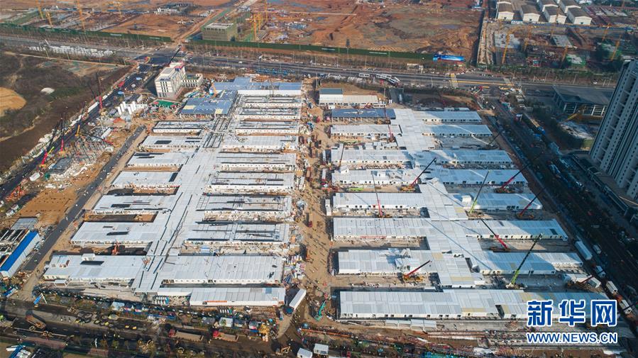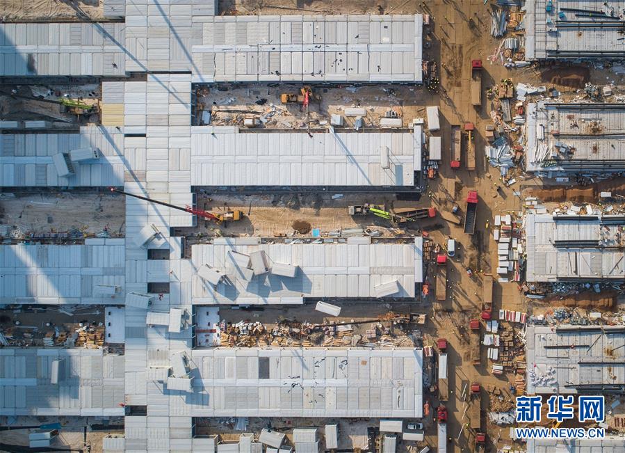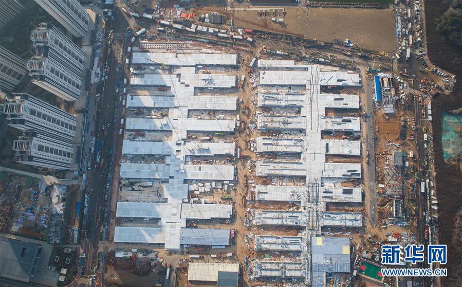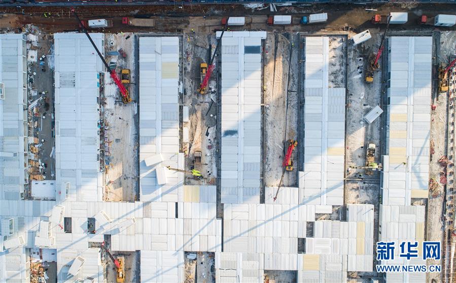 2월 4일 촬영된 무한 뢰신산병원 건설현장 (무인기 사진). (신화사 기자 소예구 찍음).
