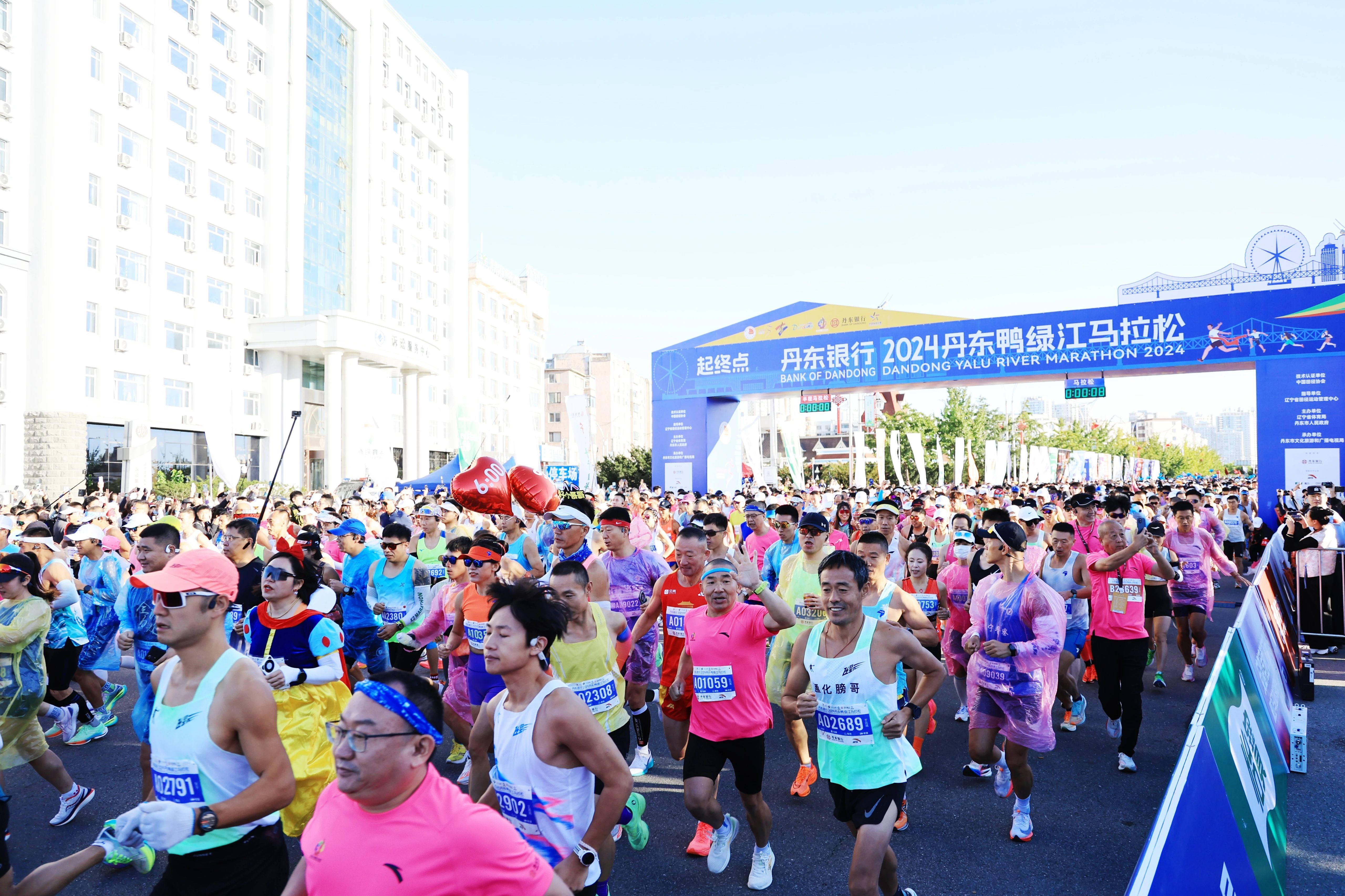 9월 22일 오전 7시, 2024 단동압록강마라톤이 시작됐다. 1.5만명의 선수들이 압록강을 따라 열정적으로 달렸다.