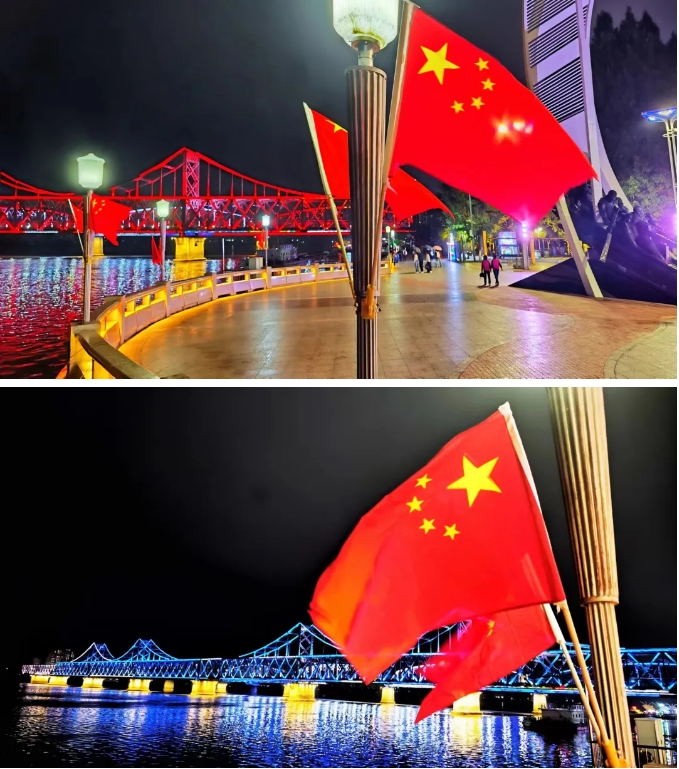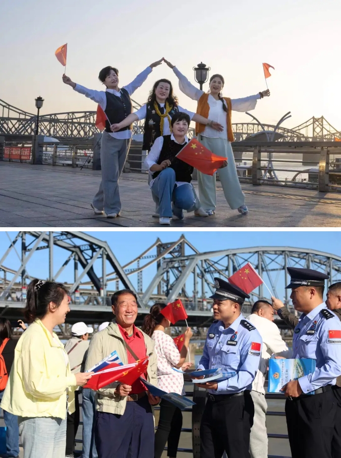 10월 1일, 중화인민공화국 건국 75주년을 맞아 밝게 빛나는 오성홍기가 힘차게 펄럭이고 압록강변에는 축복의 노래소리가 가득했다.