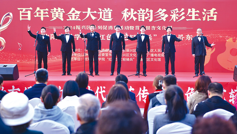 10월 31일, 단동시위 선전부와 진흥구위 구정부가 주최하고 진흥구위 선전부, 구 문화관광 및 방송텔레비전국이 주관한 ‘백년 황금대로 가을 풍경 다채로운 삶' 2024 진흥구 시리즈 소비 촉진 활동 및 제1회 은행나무 문화주ㅡ심양음악학원 ‘홍색문예경기병' 문예공연이 두견광장에서 개최됐다. 이번 행사는 위대한 항미원조 정신을 널리 알리고 홍색 혈맥을 이어나가며 단동의 문화, 체육, 관광 산업의 고품질 발전을 위한 것이다.