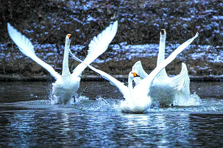 최근 철새들의 남쪽 이주와 함께 백여 마리의 백조들이 단동 봉성시 람기진 류역의 대양하로 날아왔다. 따스한 겨울 햇살 아래 백조들은 우아하게 하늘을 날기도 하고 고개를 숙여 먹이를 찾기도 하며 천천히 물놀이 위를 헤엄치기도 하여 겨울 풍경을 더욱 아름답게 만들고 있다.