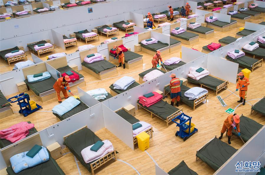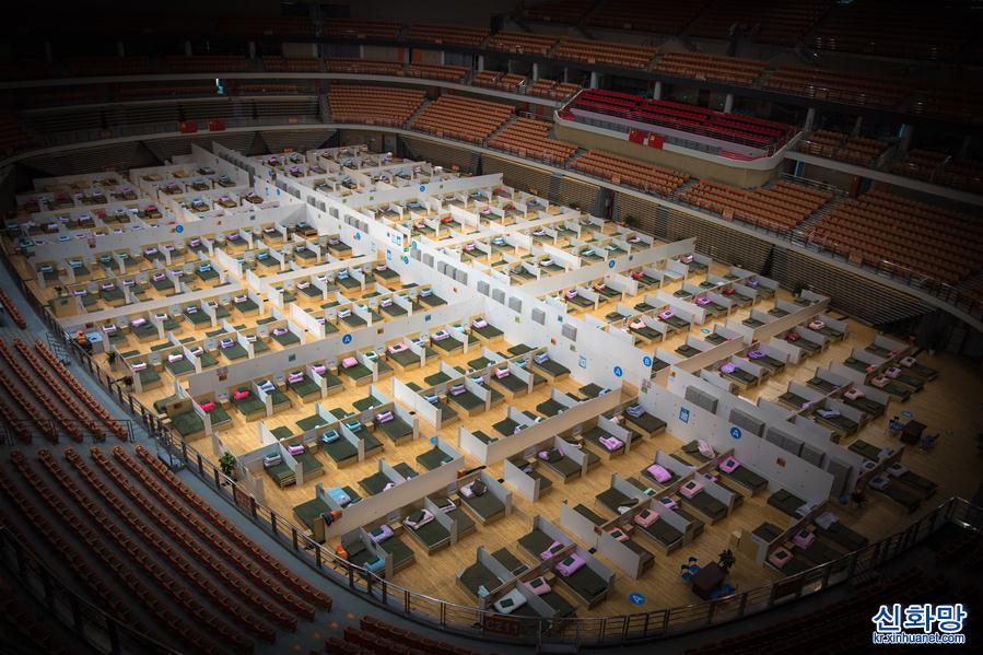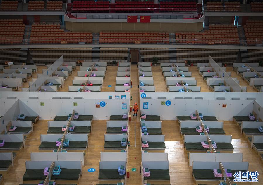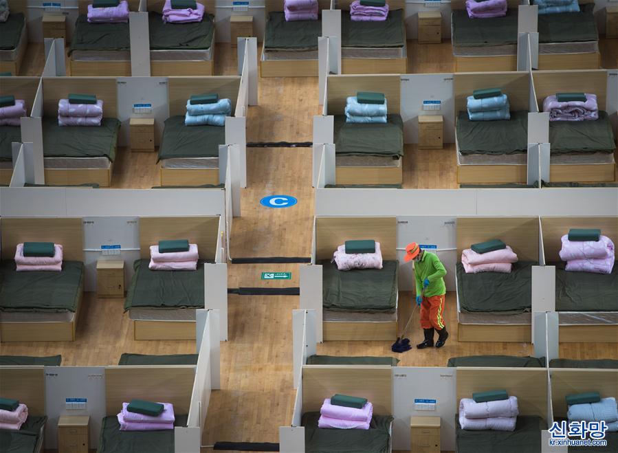 우한체육센터 팡창병원이 12일 환자 접수 여건을 구비했다. 의료 침대 1,100개가 설치된 이곳에서 신종 코로나바이러스 감염 폐렴 환자를 접수•치료하게 된다. [촬영/ 신화사 기자 샤오이주(肖藝九)]