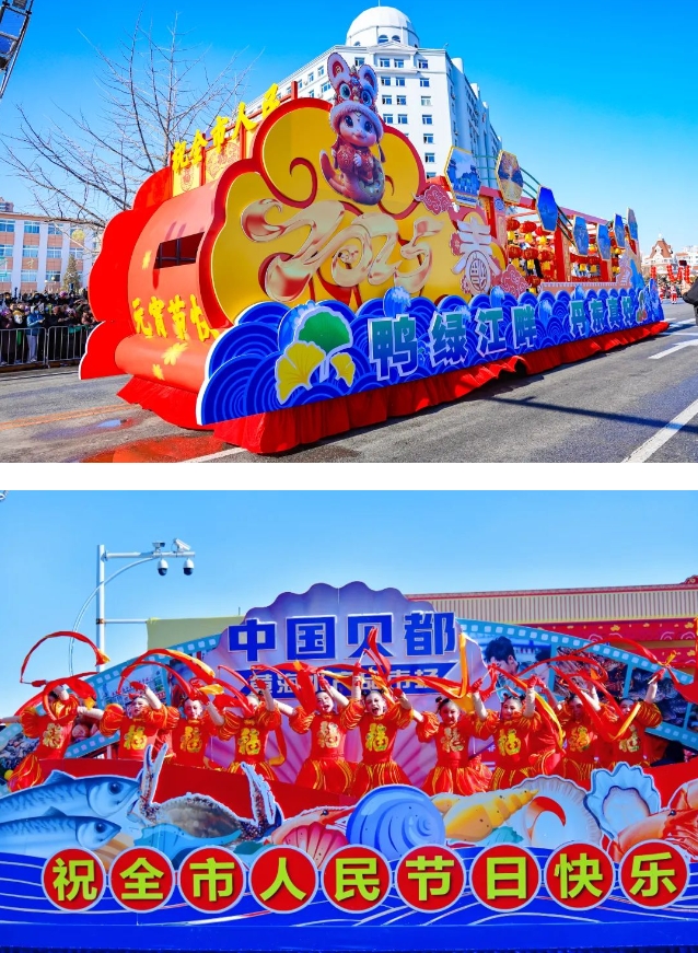 퍼레이드 행렬에서는 단동의 "홍색 관광", 딸기 문화, 빙설 경제 등 지역 특색을 담은 화려한 차량이 도시의 자연미와 인문학적 매력을 과시했다. 출연자들은 화려한 의상과 정교한 기량으로 무형문화유산 예술을 선보였고 군중들은 휴대폰을 들어 "향수와 명절 분위기가 가득한" 순간을 기록했다.