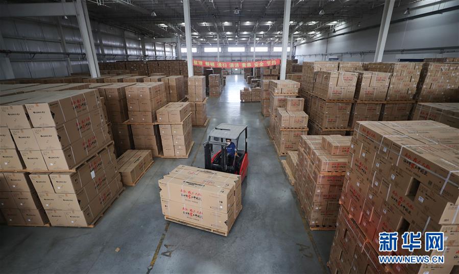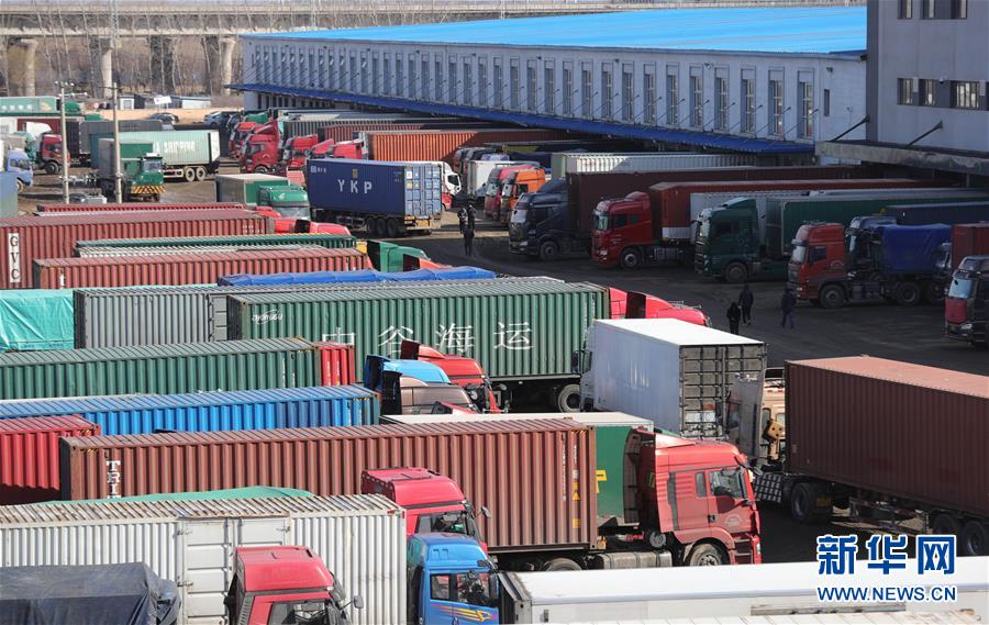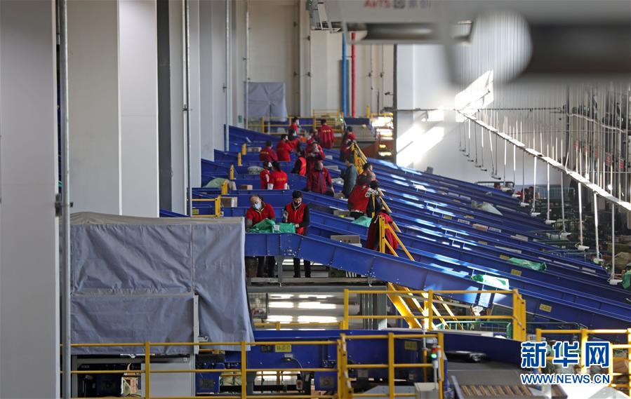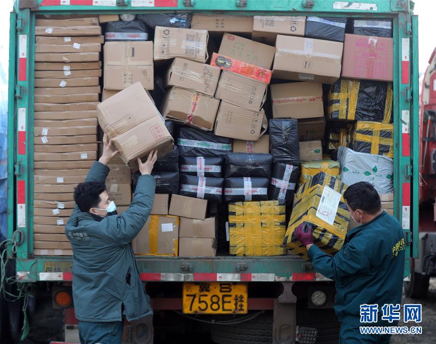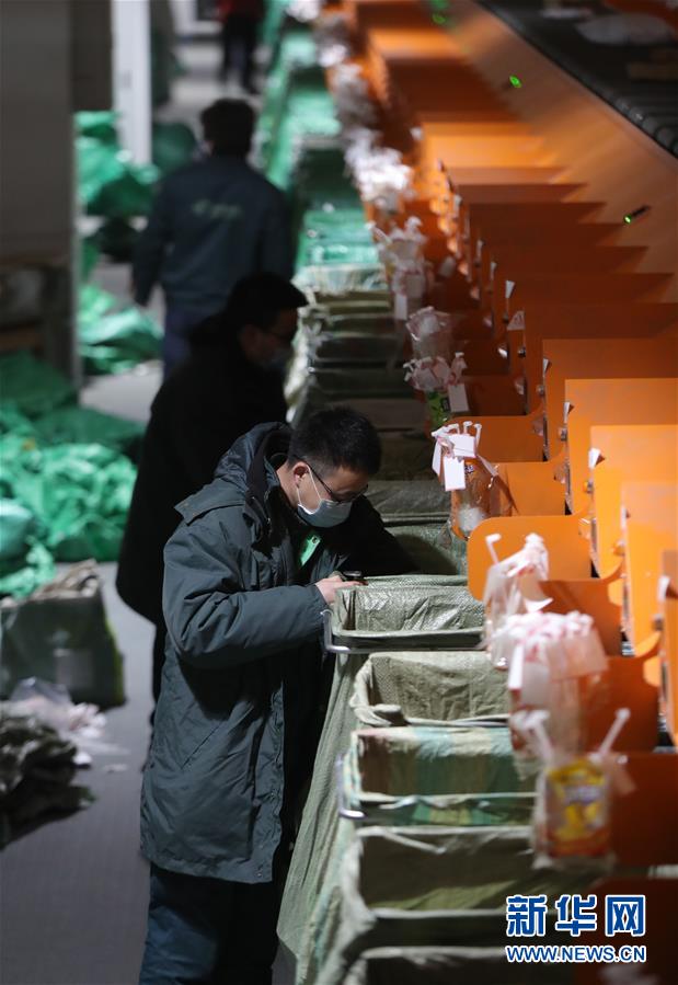 3월 10일, 중국우정택배물류 심양우편물처리중심 우편물하역구에서 화물차가 우편물을 운송하기 위해 대기하고 있다. 이날 신종코로나페염 전염병예방통제사업을 잘 하는 동시에 료녕성 심양시 물류기업은 질서 있게 업무복귀 및 생산재개를 시작했다(신화사 기자 양청 촬영).