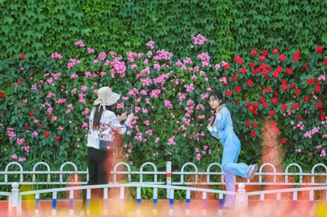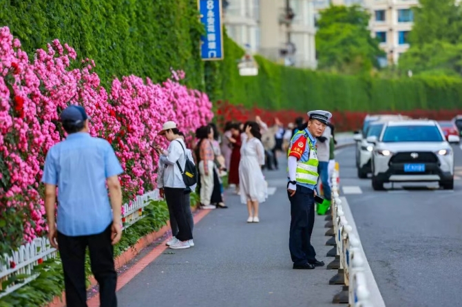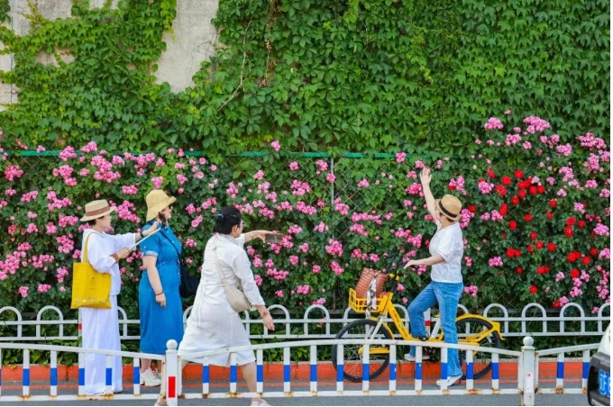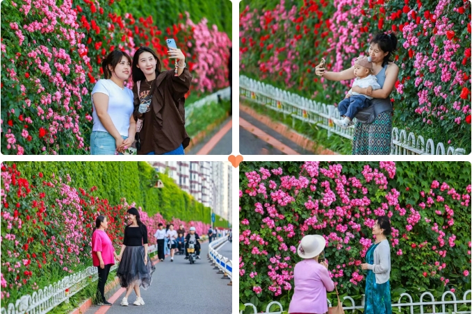 대량으로 만개한 장미꽃들이 도시를 시화(诗画)처럼 아름답게 꾸몄으며, 시민·관광객이 발을 멈추고 기념촬영하며 계절적 로맨스를 공유했다.