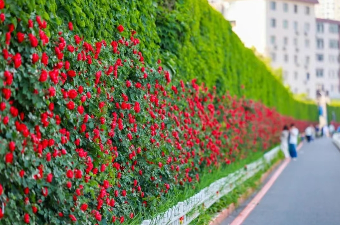 만개최근 빈강중로에서 로맨틱한 ‘꽃 이야기’가 펼쳐졌다. 만개한 장미류(蔷薇花·月季花)가 천미터 푸른 벽을 장식하며 몽환적인 동화 속 풍경을 연출했다.