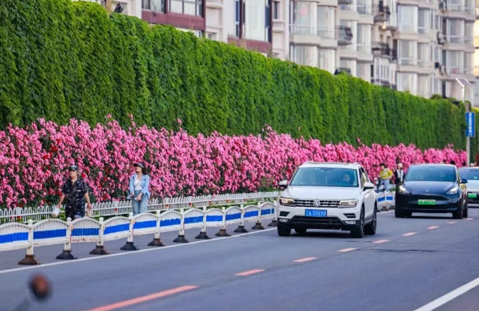 이 천미터 꽃벽은 생태 경관·휴식 운동·도시의 로맨스를 융합해 단동 초여름의 독보적 풍경으로 자리매김했다.