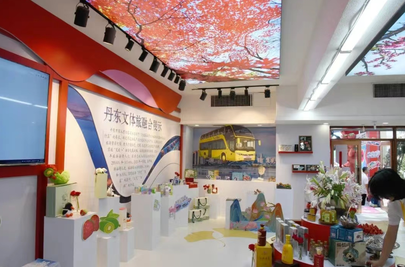 ‘단동 특산 선물’ 전시 구역에는 22개 기업이 참가해 100여 종의 전시품을 선보였고 지역 특산품·산업 명품·홍색 문화 창작으로 구성된 3대 상품 체계를 구축했다.
