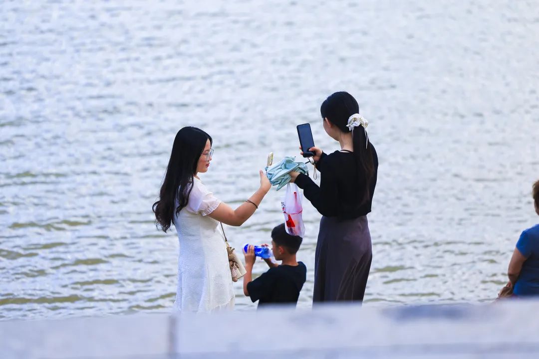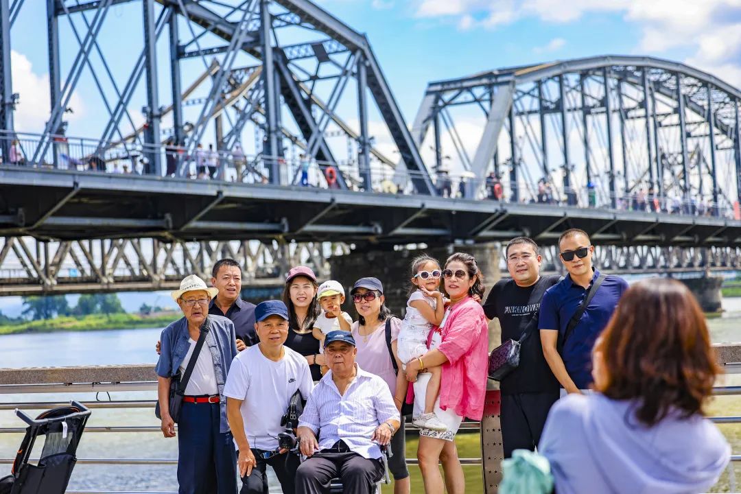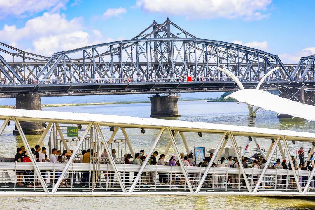 압록강의 푸른 물결과 함께 단동의 아름다운 풍경을 즐기기 위해 전국 각지에서 찾아온 관광객들로 강변은 활기로 가득 찼다.
