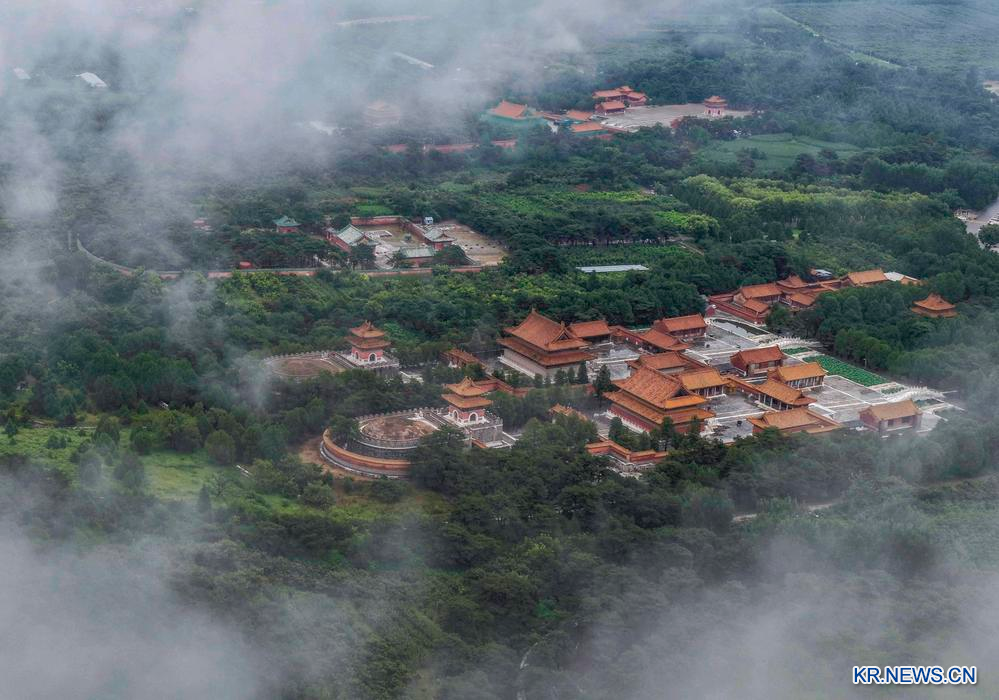 이날 오전 하북성 준화시의 세계문화유산 청둥릉에 운무가 피어나 그림 같은 장관을 이루었다.