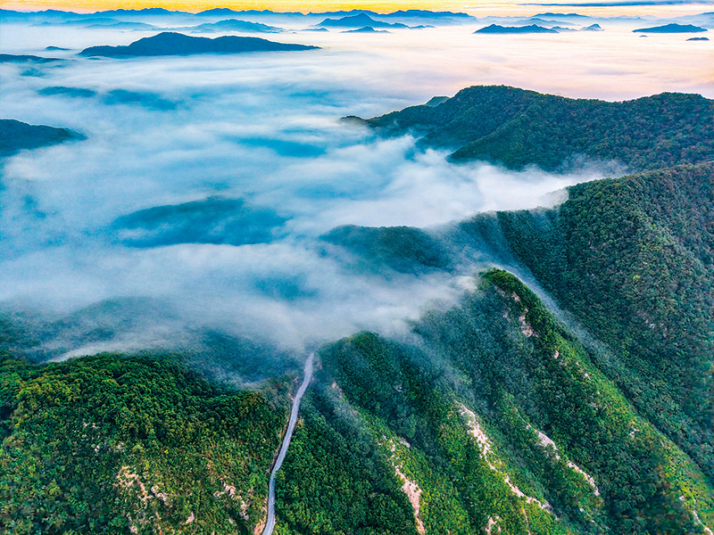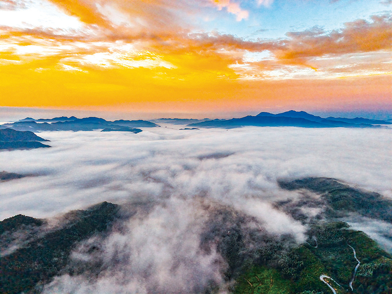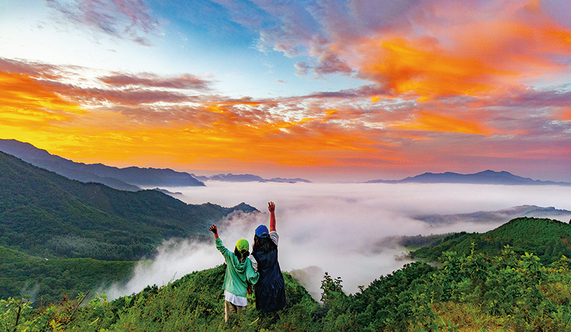 8월 13일 이른 새벽, 봉성시 석성진 석가촌 하가령 산마루에 장엄하고 아름다운 운해경관이 나타났다. 출렁이는 구름과 아침 놀이 어우러져, 산봉우리가 아른거리며 많은 관광객들이 찾아와 촬영하고 감상했다.