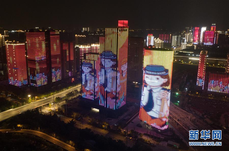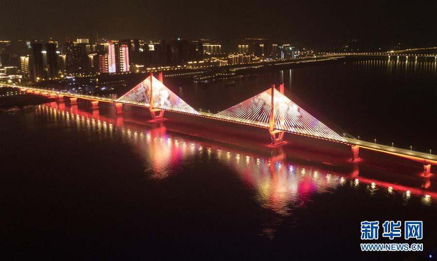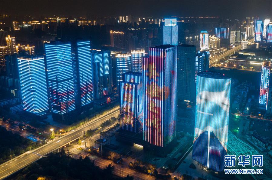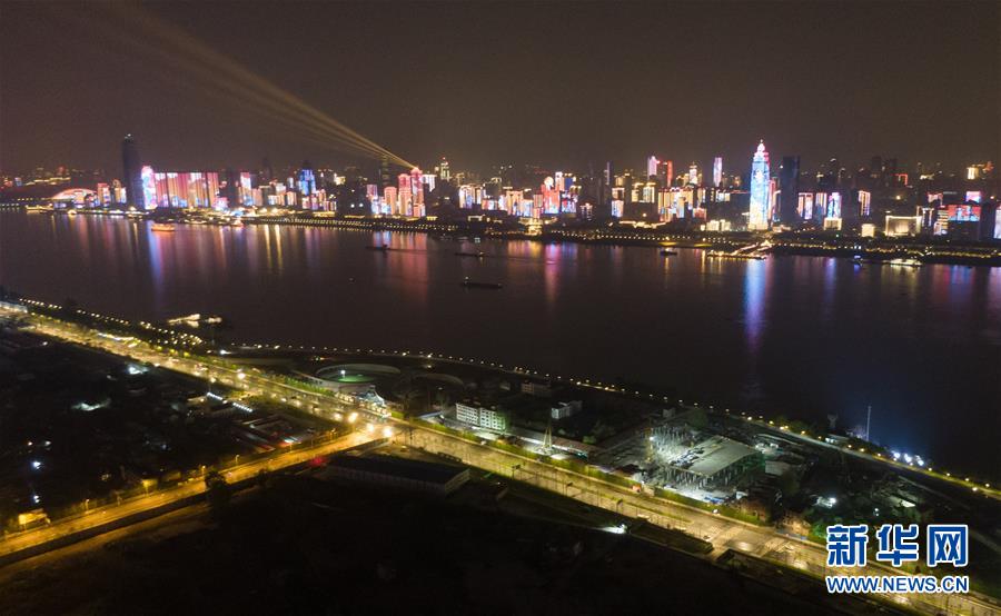 4월 8일 0시부터 무한시는 정식으로 무한과 호북으로 통하는 통로 봉쇄조치를 해제하고 전 시 경관조명을 다시 켰다(신화사, 무인기 촬영).
