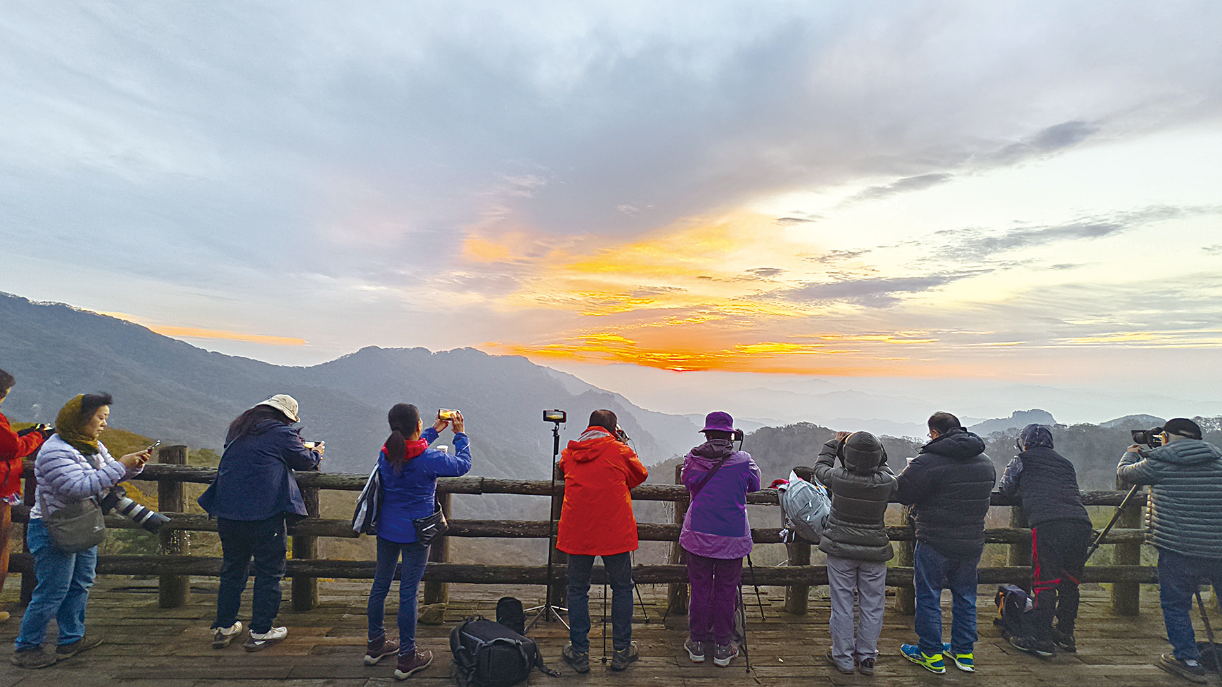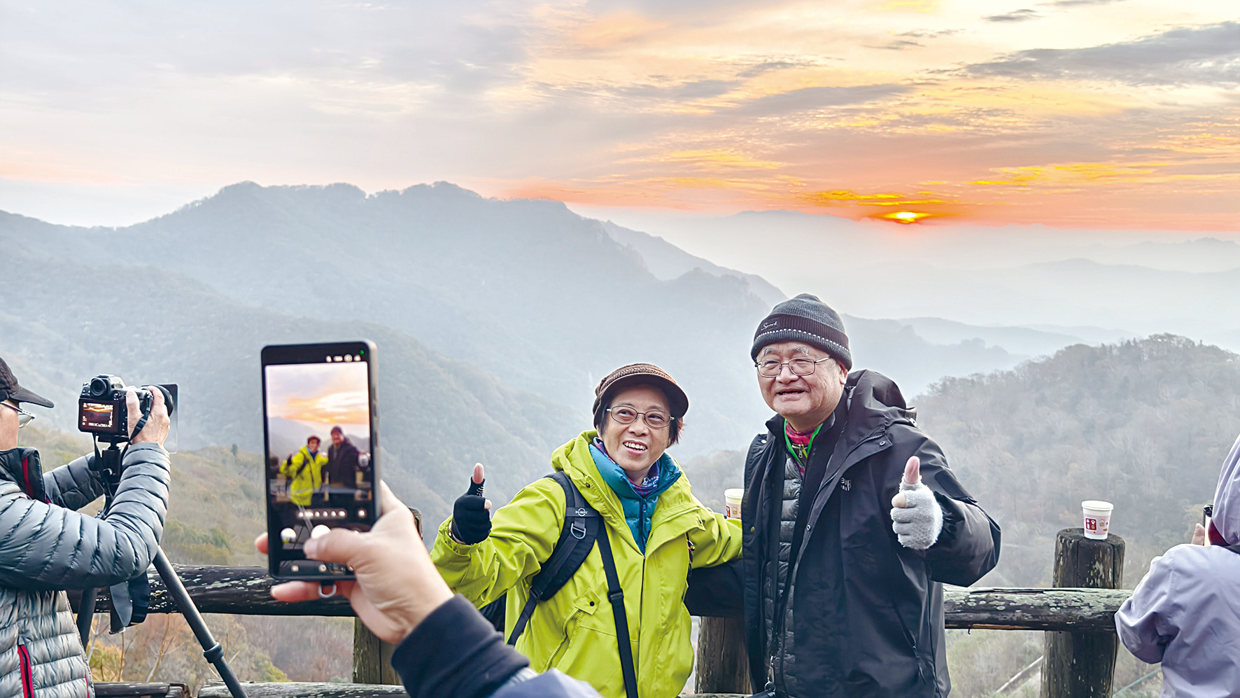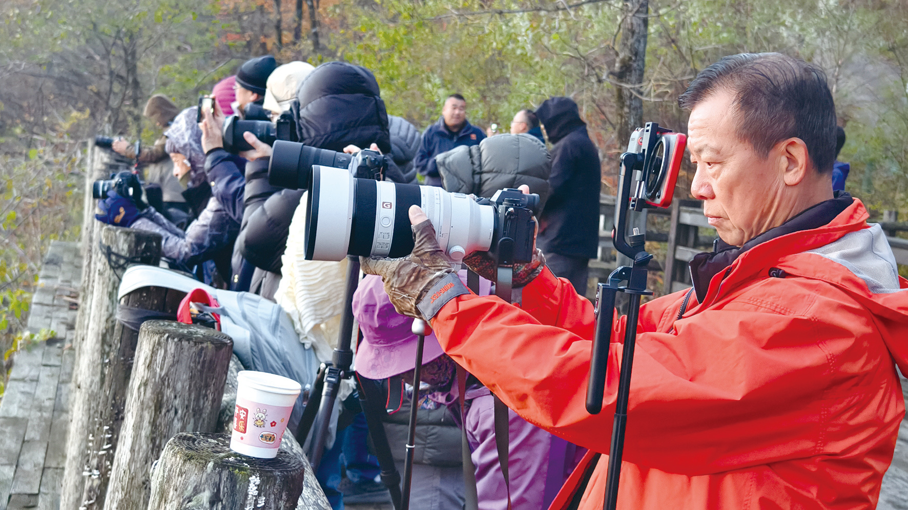 10월 12일 새벽, 관전만족자치현 천교구 풍경구의 최고점인 해발 1,040메터 정상에서 홍콩에서 온 12명으로 구성된 촬영팀 일행이 풍경구 직원들의 안내를 받아 일출 촬영에 나섰다.