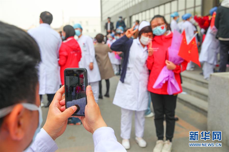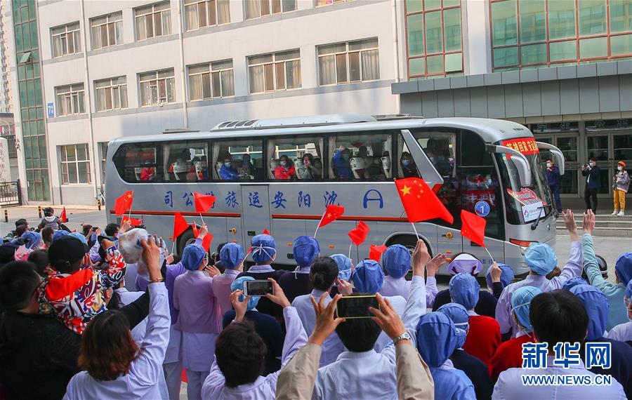4월 15일, 중국의학대학 부속제4병원 호북지원 의료진들은 뻐스에 탑승해 병원으로 돌아갔다.