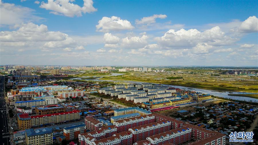 네이멍구 후룬베이얼시 어원커족 자치기 중신진 거리 풍경(드론 사진, 2017년7월1일 촬영)[촬영/신화사 기자 롄전(連振)]