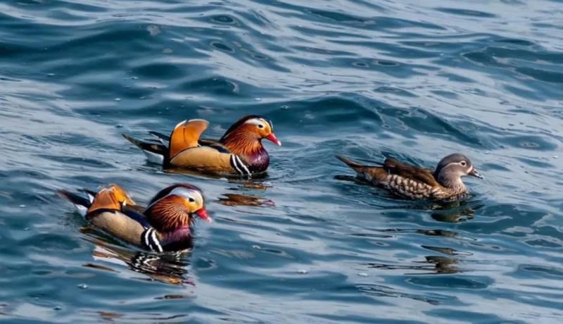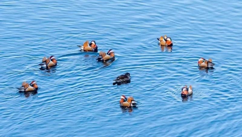 매일 오전 현민족광장 부근 강면에는 30여마리에 달하는 원앙떼가 장난친다.
