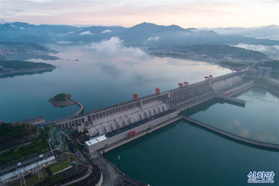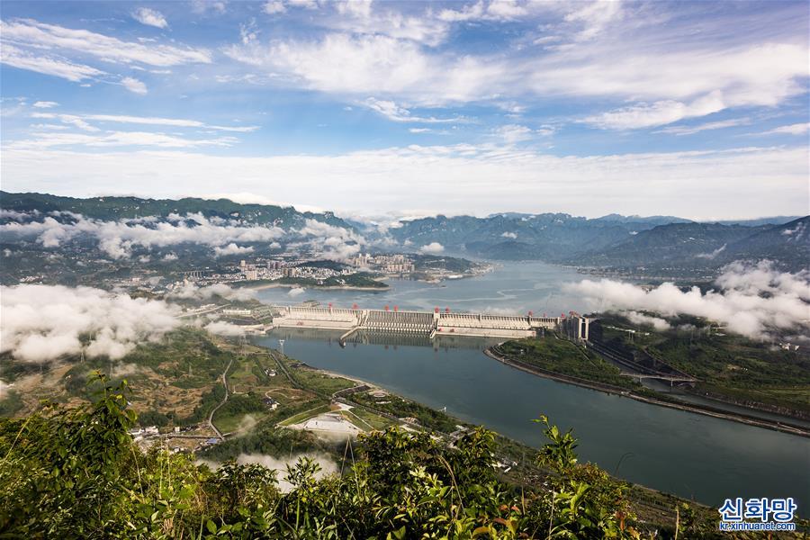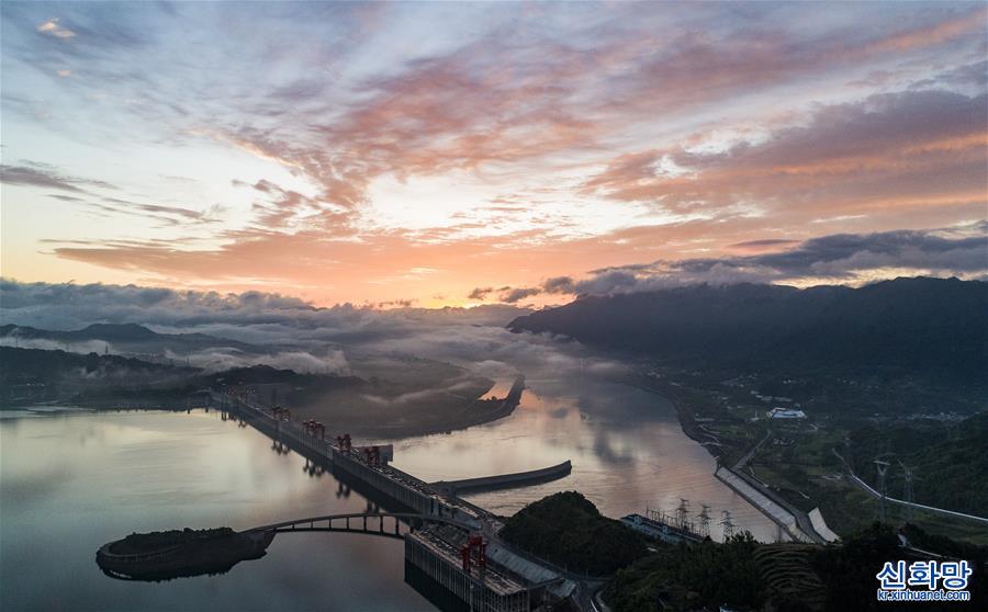 비온 후 싼샤댐 상공이 운무에 휩싸여 장관을 연출했다. [촬영/왕강(王罡)]