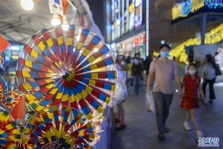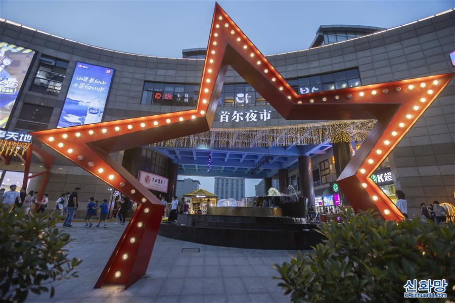 주말 저녁, 사람들이 상하이시 민항(閔行)구 훙차오(虹橋)진의 ‘서울야시장(首爾夜市)’을 찾아 색다른 야간생활을 체험했다. 5월1일 시장 재개 후 이곳을 찾는 손님들도 점진적으로 늘어나고 있다. 야시장이 영업을 재개했지만 각종 방역 조치는 완화되지 않았다. 상가 공공시설은 하루 3회 소독하고 상점들은 매장 안에 소독용품을 비치하고 있다. [촬영/신화사 기자 황안치(黃安琪)]