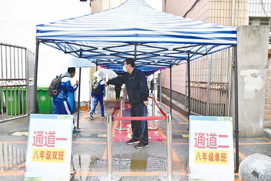 단동뉴스넷 기자 국신뢰, 촬영 류해동 5월 18일, 단동시의 고중 2학년과 초중 2학년, 중등직업학교 졸업학년이 등교를 시작하였다. 이번에 개교한 학교는 모두 34개로, 학생이 30705명, 교직원이 9829명이다. 시교육국에서는 22개의 감독지도조를 구성하여 22개 시직속 초중, 고중(민영학교 5개 포함)학교에 들어가 사업을 지도하였다.