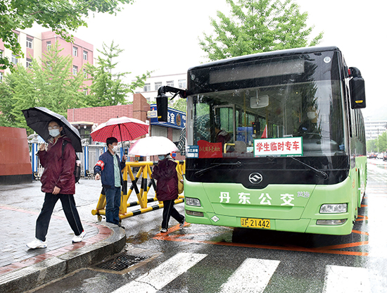 5월 18일, 단동시공공교통총공사에서는 학생들의 등교와 방과 시간대에 맞춰 8개의 림시대중교통선선을 개통하고 33대의 학생전용뻐스를 투입했다. 뻐스에는 관리원 한명만 배치했는데 학생들과 학부모들은 정상 뻐스표값에 따라 돈을 내면 된다. 기자 오경 찍음