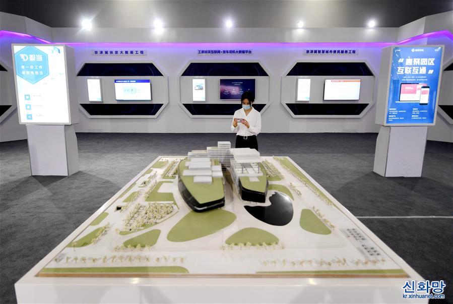 허베이성 랑팡시 경제기술개발구에 위치한 징진지 빅데이터 혁신응용센터는 허베이성 첫 빅데이터 산업 건축 복합건물로 체험센터, R&D센터, 솽촹센터, 응용센터, 감지체험센터 등 5대 핵심기능구를 갖추고 있으며, 부지면적은 총10.5만 평방미터이다. [촬영/신화사 기자 왕샤오(王曉)]
