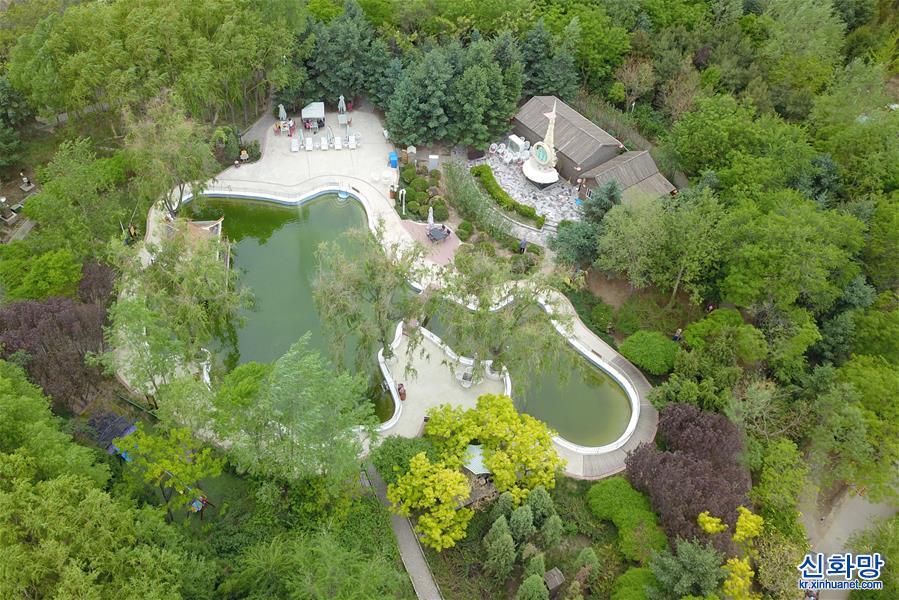 5월18일 란저우시 청관구 가오란산 아래 우췬안산 공원의 초여름 풍경(드론 사진).