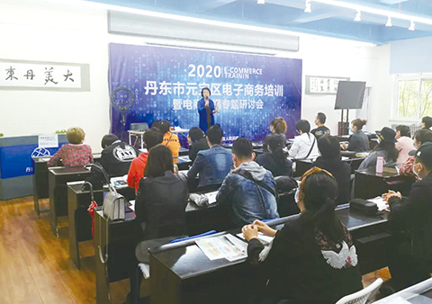 련 며칠동안 단동시 원보구에서는 전지역상업무역기업과 개체상공업자를 대상으로 전자상거래훈련및'전자상거래생방송'전문연구토론반을 개강하여 전자상거래 생중계판매방식을 모색하였다. (조효미 기자 장요 찍음)