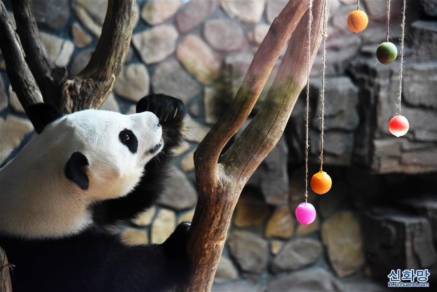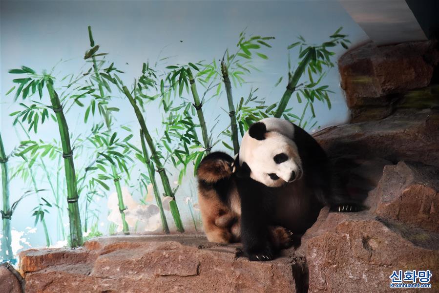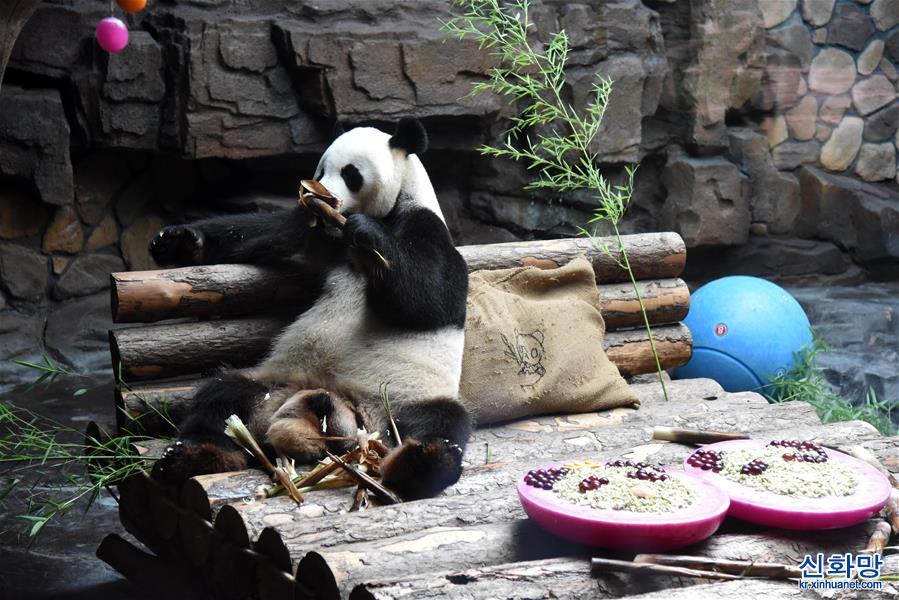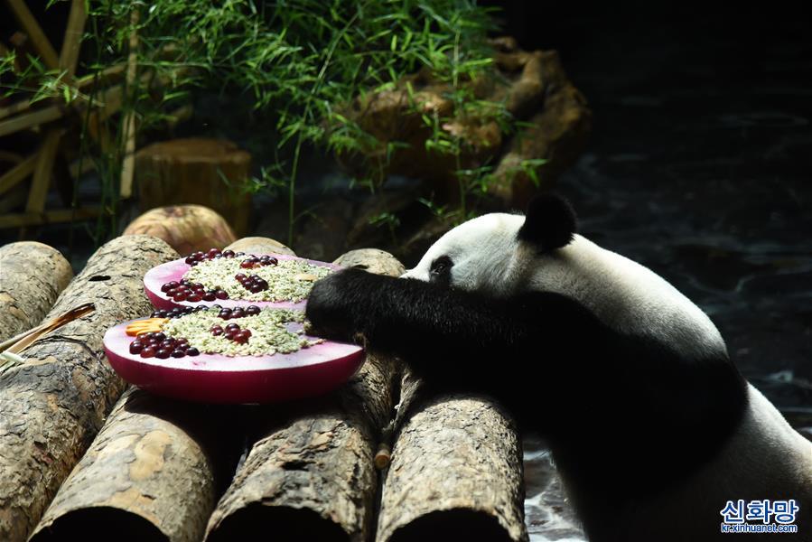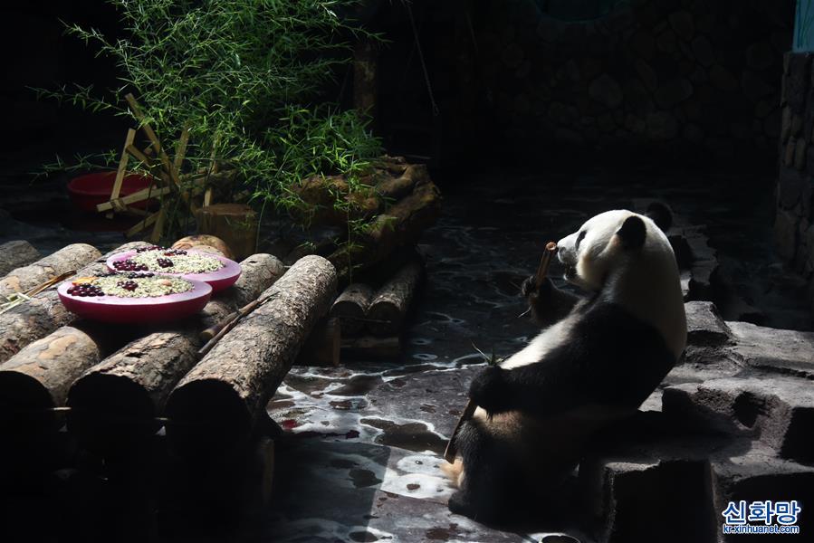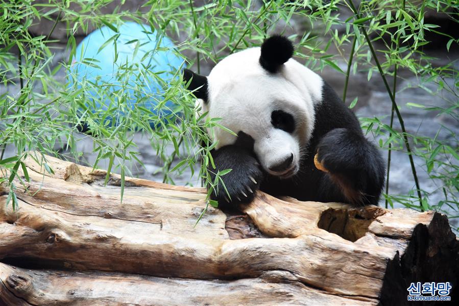 지난의 기온이 연일 치솟으면서 지난 야생동물원 ‘와일드 월드(Wild World)’는 판다 ‘얼시(二喜)’가 시원한 여름을 보낼 수 있도록 하기 위해 특별히 에어컨이 나오는 방과 얼음 식사를 준비했다.[촬영/신화사 기자 왕카이(王凱)]