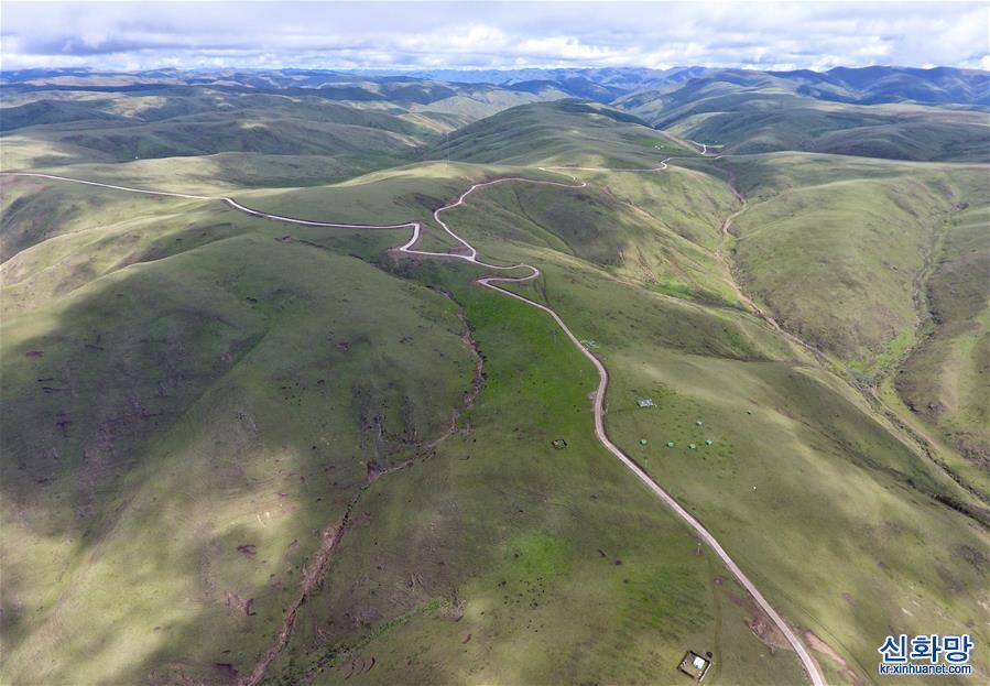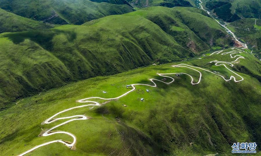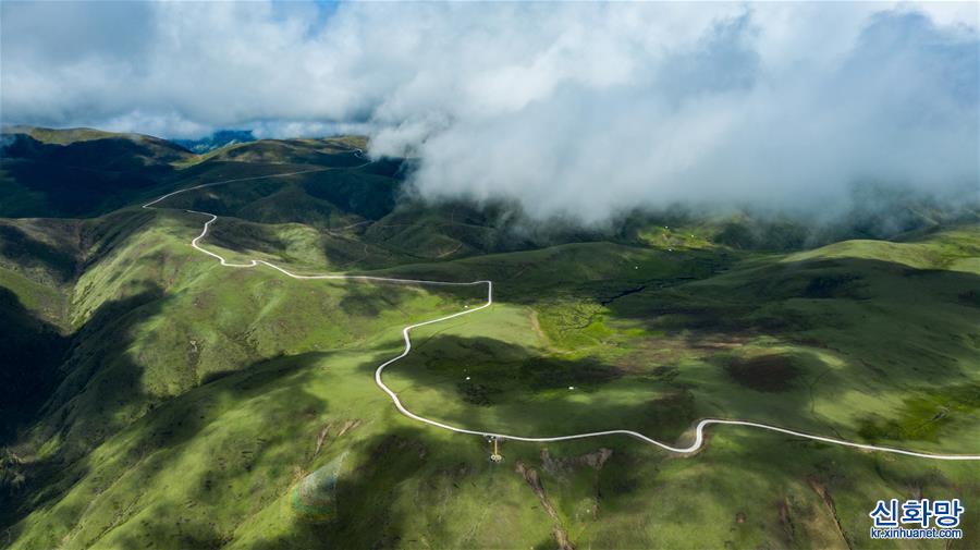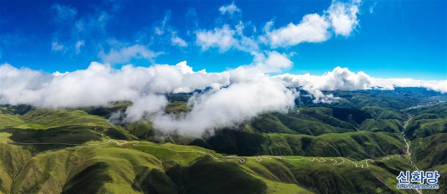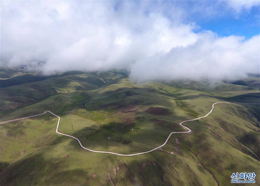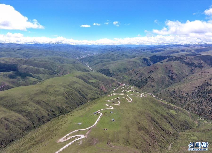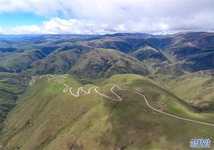 ‘상두커-난무다 하늘길’(6월13일, 드론 파노라마 촬영). 쓰촨성 아바 짱족창족자치주 랑탕현 ‘상두커-난무다 하늘길’의 전체 길이는 약34km이며, 약5천만 위안이 투자됐다. 상두커(上杜柯)향과 난무다(南木達)진을 잇는 최고 해발고도는 약 4200m이다. 오는 7월 완공을 앞두고 있는 ‘상두커-난무다 하늘길’은 연선 주민 2천여 명의 외출과 생산, 생활에 직접적으로 혜택을 줄 것으로 예상된다. ‘랑탕현성-상두커향-난무다진’ 순환선을 이루는 도로 연선의 풍경이 너무나 아름다워 상두커-난무다의 약칭 ‘상난(上南)’을 ‘상란(尚藍)’으로 바꿔 ‘상란 하늘길’로도 불리는 이 길은 도로와 풍경이 어우러져 랑탕현 여행의 명함으로 떠올랐다. 2009년 이후 교통운수부는 탕랑현을 탈빈곤 지원 현으로 지정해 누적15억2천만 위안의 자금을 투입하고 교통 프로젝트 127개를 실시해 현의 도로 위험, 외출과 수송난, 물류 불편 등의 문제를 해결하고, 주민들의 생산, 생활 여건과 거주환경을 개선하는 등 경제 발전의 ‘경제 동맥’을 뚫어주어 현지 빈곤퇴치에 힘을 보태고 있다.[촬영/신화사 기자 선보한(沈伯韓)]