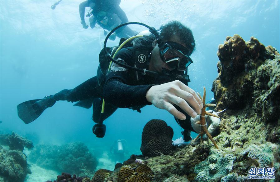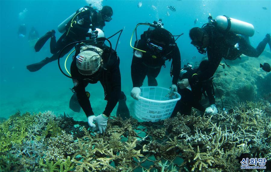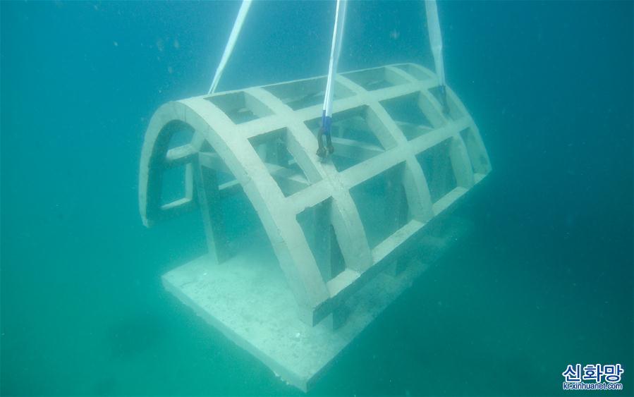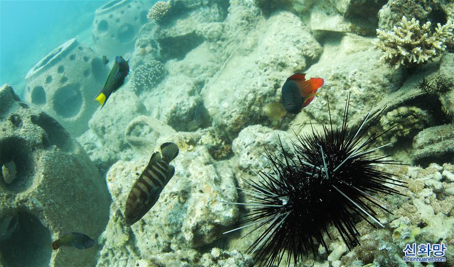 하이난성 싼야 우즈저우다오 해역 해양목장은 하이난의 첫 국가급 해양목장 시범구이자 중국 첫 열대지역 소재 해양목장이다. 근년 들어 우즈저우다오 해역 해양 목장은 해양 생태시스템 복원과 보호를 추진해 인공어초를 투하하고, 해양 환경을 정비하고, 산호를 이식하는 등의 사업을 펼쳤다. 2019년말 기준 우즈저우다오 해역 해양 목장에 각종 인공어초 1526개, 폐선 21척과 화산석초를 투하하면서 인공어초 등 시설물이 설치된 해역은 설치 되지 않은 해역에 비해 어업 자원이 5배 이상 높아졌다. 현재 우즈저우다오 해역 해양목장은 초기 형태를 보이고 있다. [촬영/신화사 기자 양관위(楊冠宇)]
