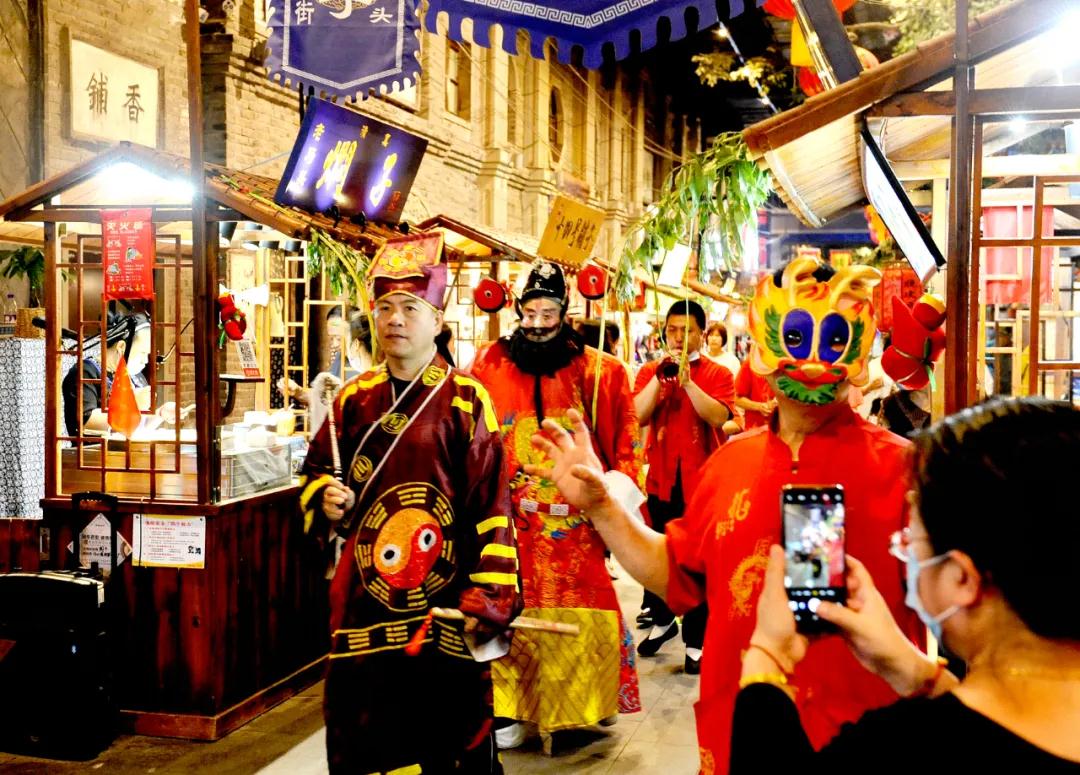 안동로가 종규순가에서 펼쳐지는 민속공연장에는 수많은 구경군들이 모여들었다. .