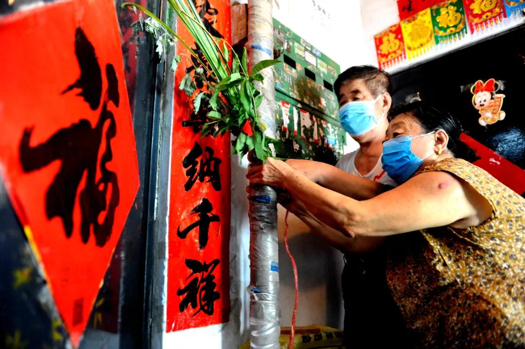 진흥구 홍방1사회구역 204호에 사는 왕영지, 조신방부부는 일찌감치 쑥을 문앞에 걸었고 단건형원 32호에 사는 시민 상릉군은 오색 끈을 일곱살 난 아들의 손목에 매주었으며 리설은 4살 난 딸을 데리고 실외 화초에 가서 이슬을 땄다.
