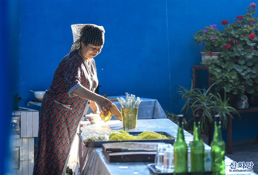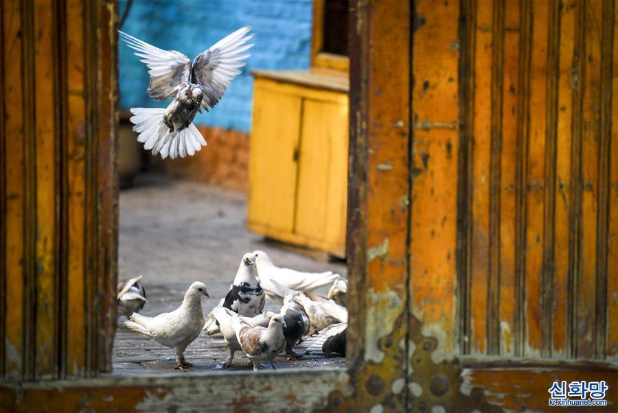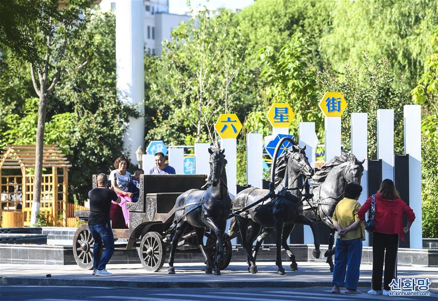7월 4일, 고양이가 류싱제(六星街) 한 주택에서 밖을 내다보고 있다. 신장(新疆) 이닝(伊寧)시의 유명한 역사·문화 거리로서 풍부한 다문화 특색을 가진, 지난 세기 30년대에 건설된 류싱제는 설계가 정연하고 공중에서 부감했을 때, 시내 구역이 육각형 모양으로 배치되었다. 최근 몇 년간 현지는 류싱제 역사거리를 개조하고 업그레이드시켜 이 구역의 역사적 풍모를 유지하는 동시에, 주민들의 생활환경을 개선함으로써 각 지역 유람객과 창업자의 투자를 유치했다. [촬영/ 신화사 기자 왕페이(王菲)]