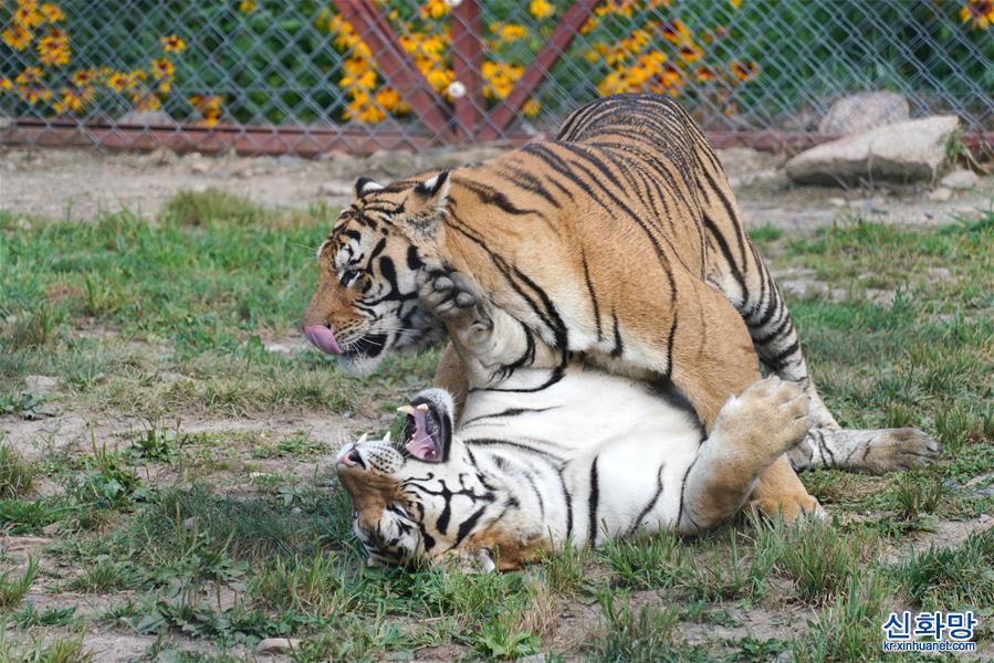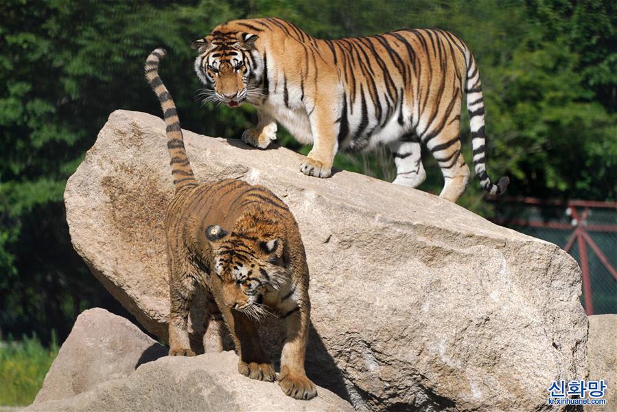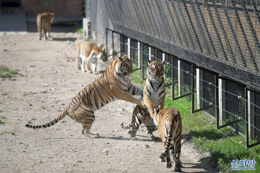 7월 27일 헤이룽장(黑龍江) 헝다오허쯔(橫道河子) 동북호랑이공원에서 촬영한 동북호랑이. 7월 29일 ‘세계 호랑이의 날’을 앞두고 기자가 최근에 영업을 재개한 헤이룽장성 하이린(海林)시 헝다오허쯔 동북호랑이공원을 방문했다. 세계에서 가장 큰 동북호랑이 인공번육기지로서 헝다오허쯔 동북호랑이공원에 현재 동북호랑이 400여마리가 살고 있고 중국 헝다오허쯔 고양이과동물사육번육센터의 중요한 사육·번식 기지 중 하나이다. [촬영/ 신화사 기자 왕젠웨이(王建威)]